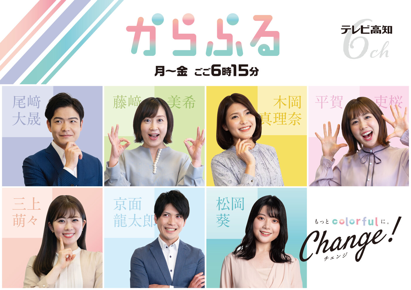 夕方のニュースワイド「からふる」は、高知の「今」にこだわり、注目ニュースから暮らしに役立つ情報まで幅広くお届けするとともに、女性をターゲットにしたコーナーも新設。