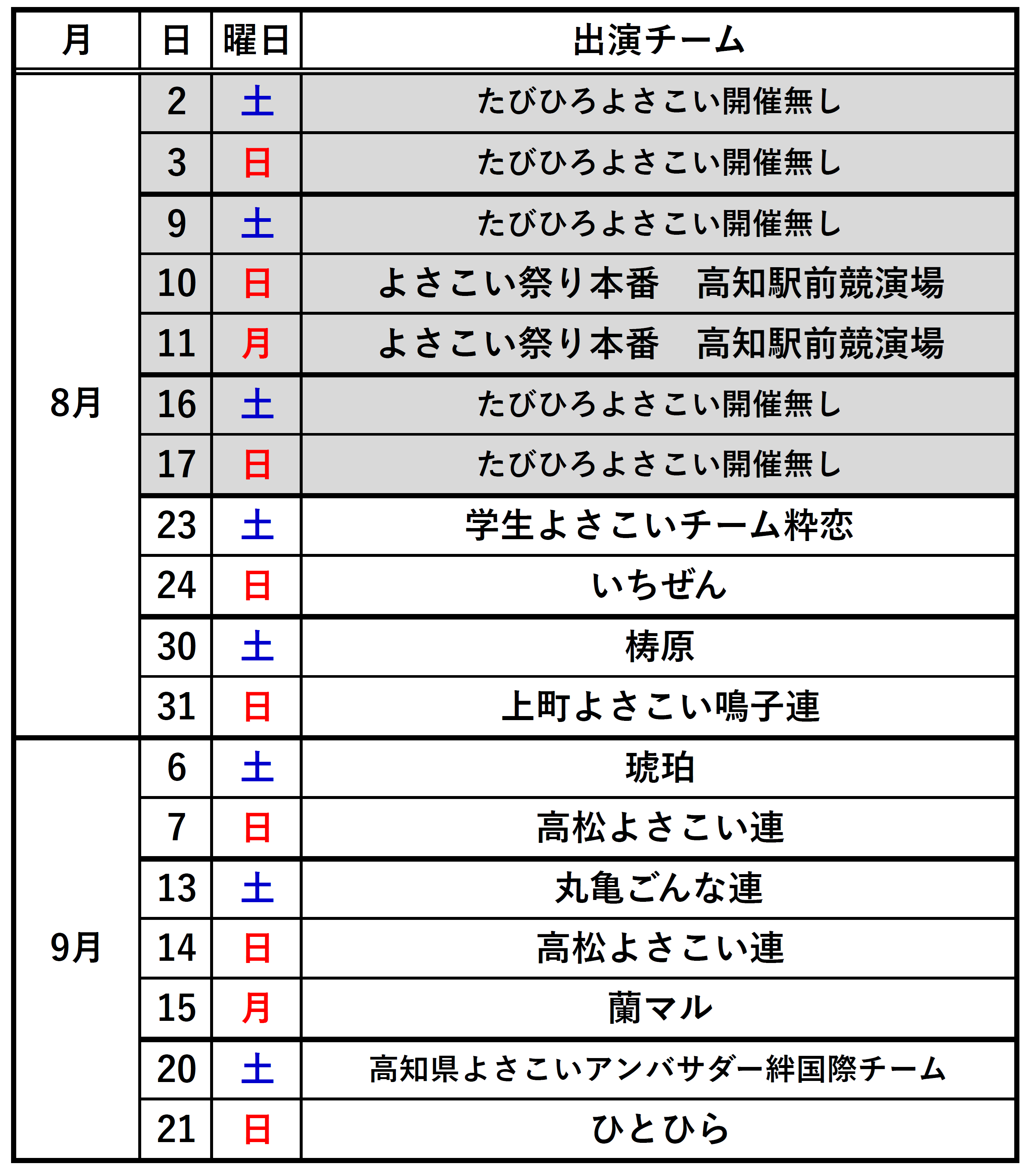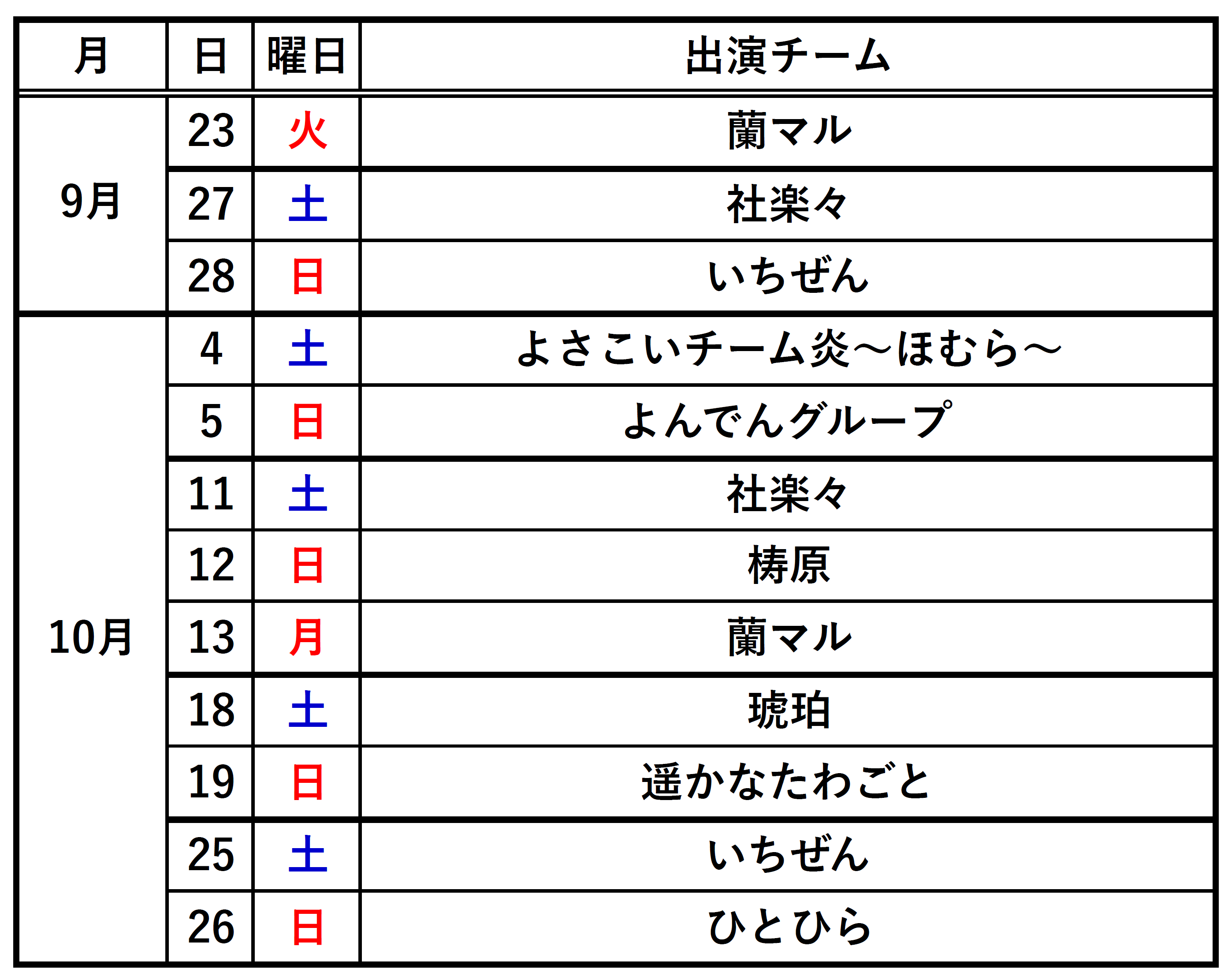 【10月】たびひろよさこい(毎週土・日・祝日開催)