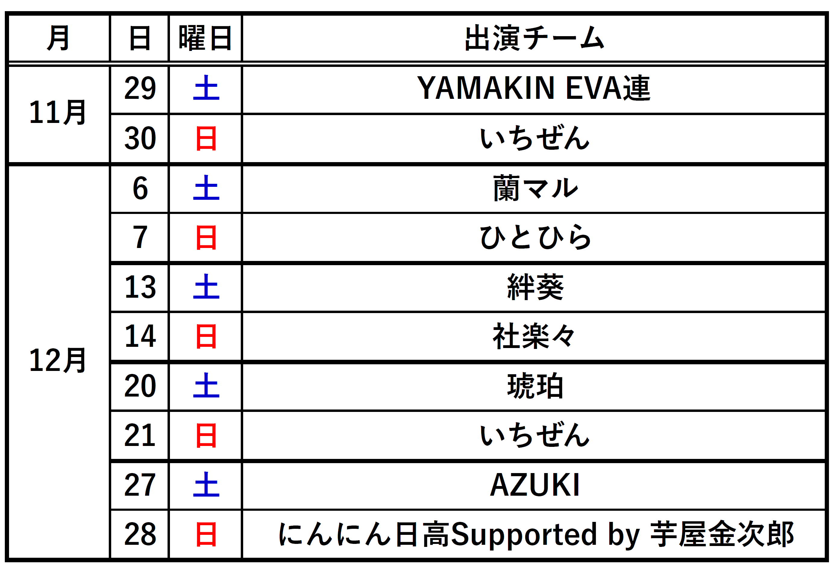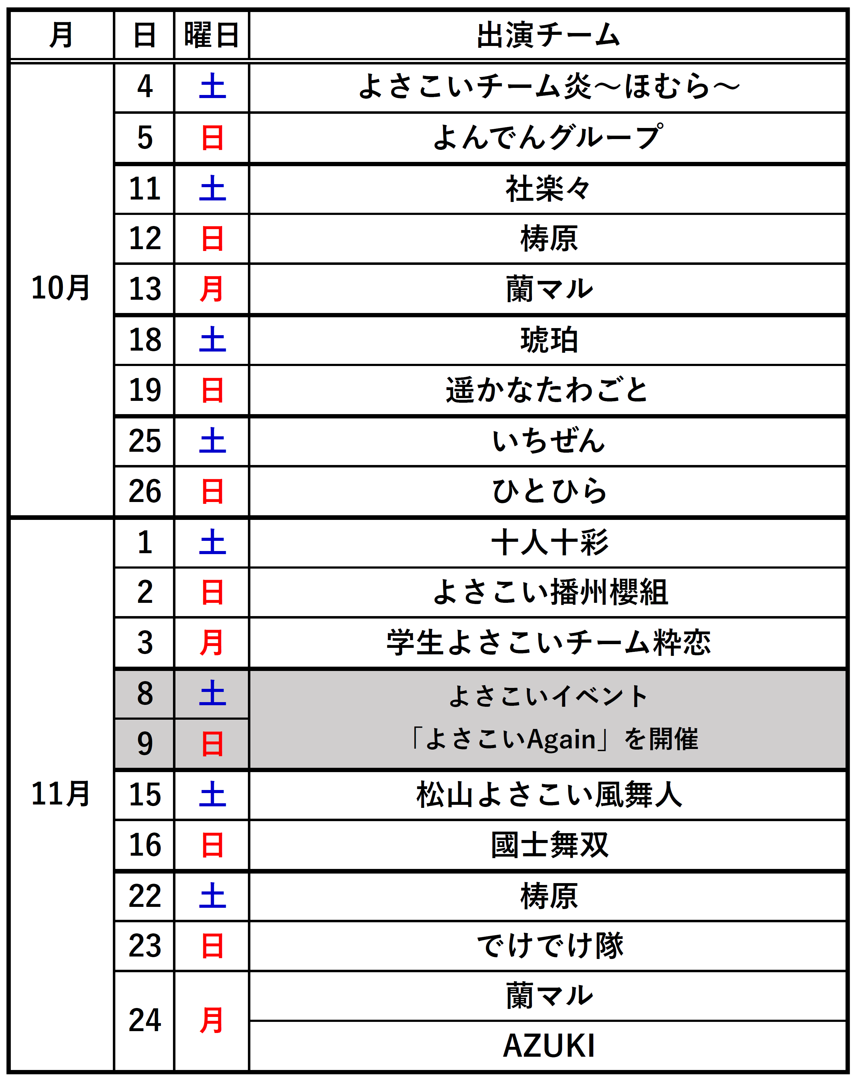 【11-12月】たびひろよさこい(毎週土・日・祝日開催)