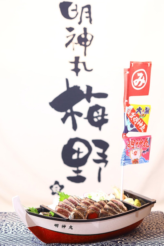 明神丸初!わら焼き体験の出来るお店。自分で焼いた鰹のたたきと共に、出汁にこだわった梅ちゃん特製おでんや、漁師直送金目鯛など、様々な土佐料理をお楽しみいただけます。