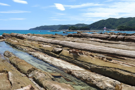 竜串海岸では巨大な竜の背骨が横たわっているような岩をはじめ、不思議な形をした岩がいっぱい。