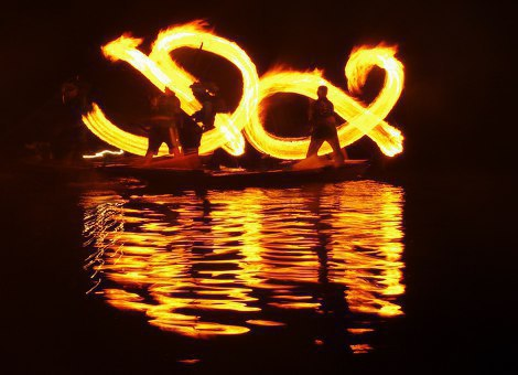 四万十川に伝わる勇壮な鮎の追い込み漁を船に乗って間近に見学夏から秋にかけての四万十川の風物詩「火振り漁」。松明の火を振って鮎を追い込む勇壮な漁を屋形船に乗って見学します。漁師が振り回す松明が闇に大きな火のかたまりとなって舞い川面を焦がす情景は、今では他では見られない貴重な観光。暮れなずむ川の静寂もこの火振り漁遊覧船ならではの楽しみのひとつです。