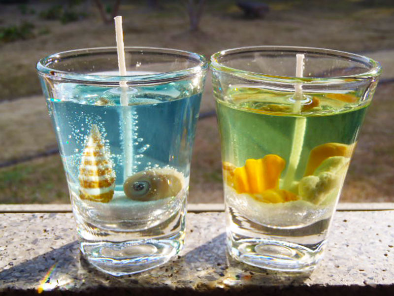 不思議な奇岩の覆われた海岸!巨大なサンゴ!驚きの海の自然がいっぱいの竜串の思い出作品づくり(海のギャラリー入館料込)高さが10㎝のショットグラスに美しい貝を入れてキャンドルを作ります。難しそうに見えますが、作れば意外に簡単。