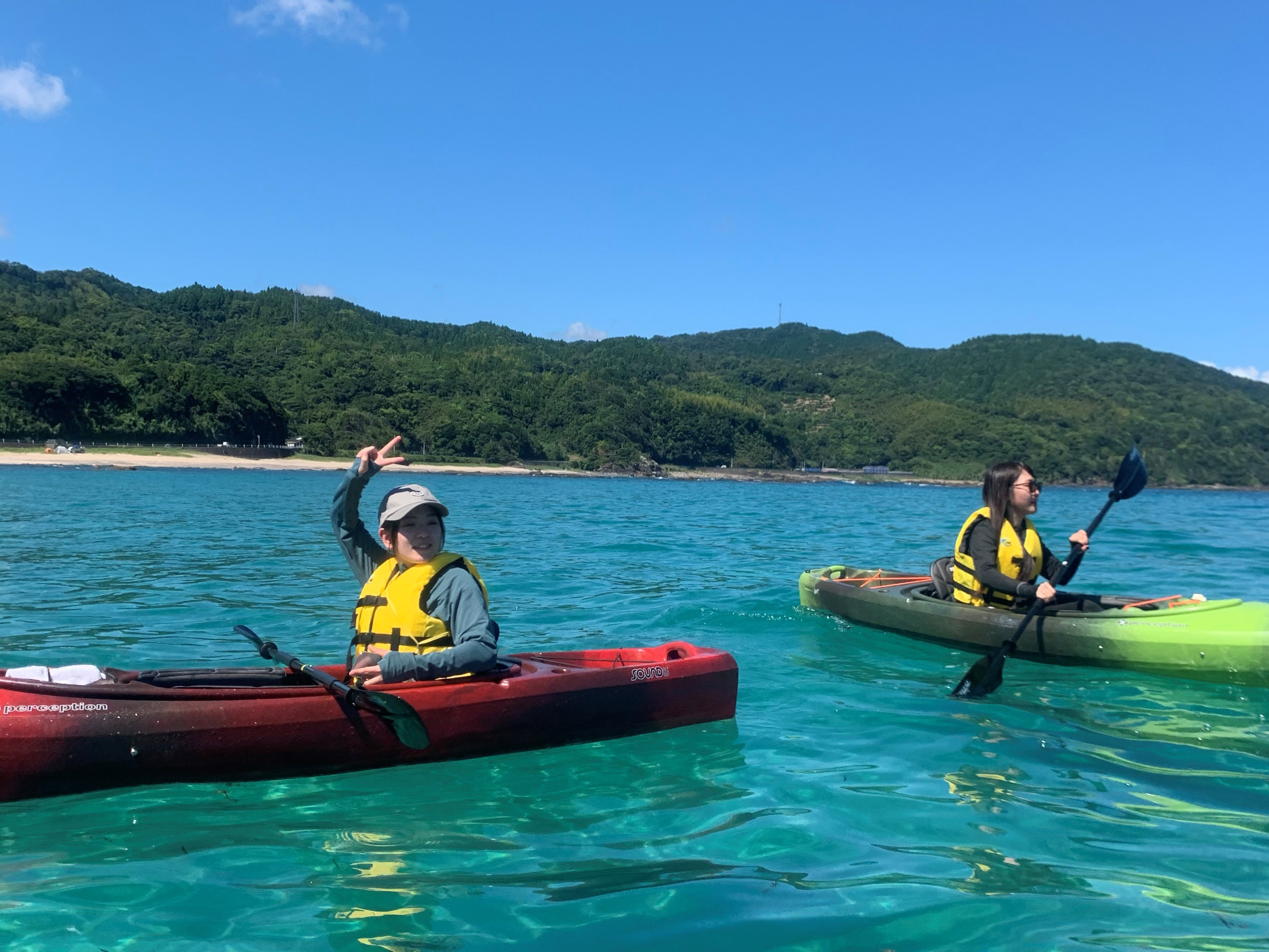 コースとなる湾内は波が穏やかなので、お子様や初心者でも安心してシーカヤックを楽しめます。