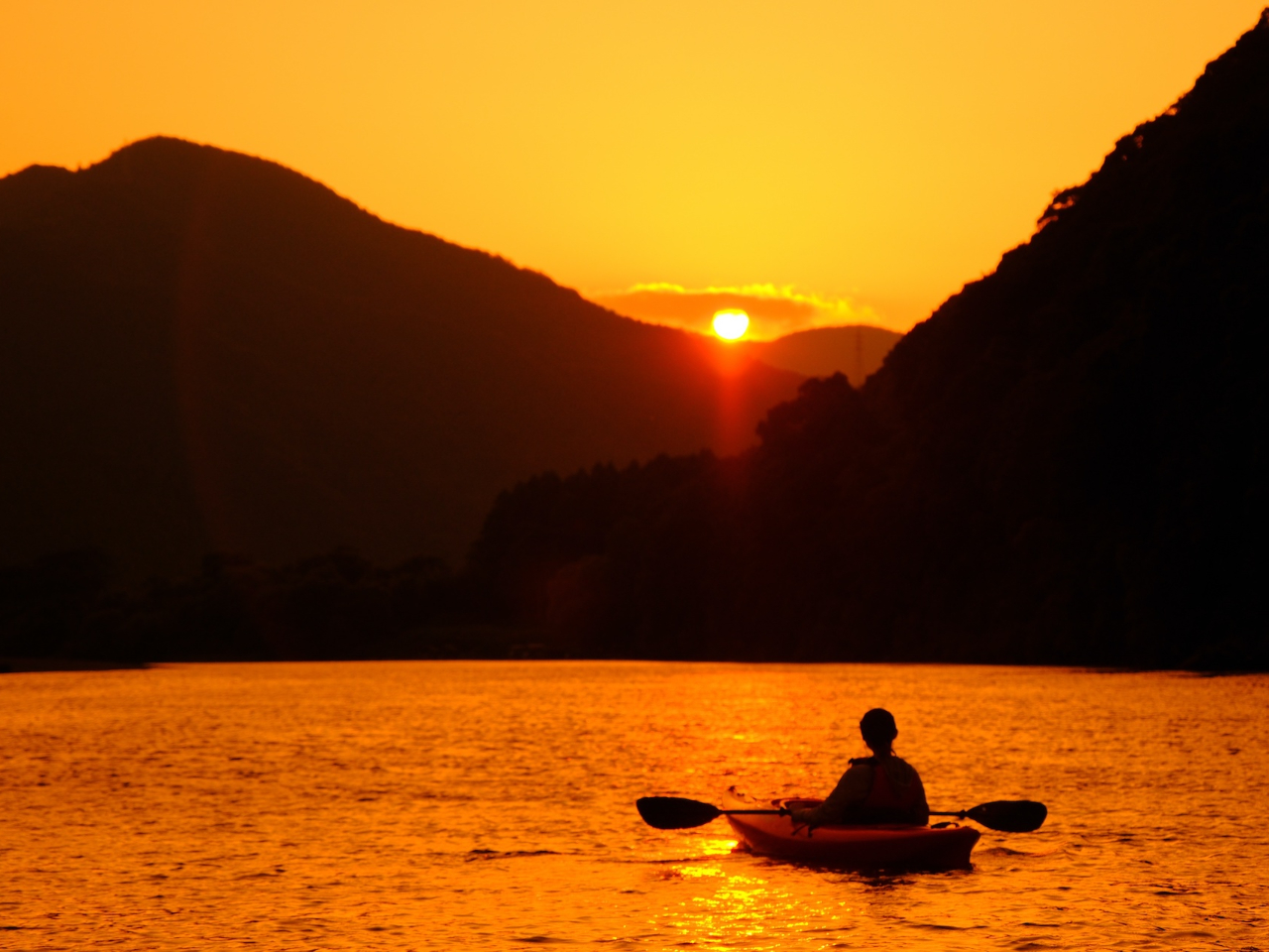 【期間限定】夕暮れコース(カヌー)|水上ドリンク付き・四万十川の黄金タイム