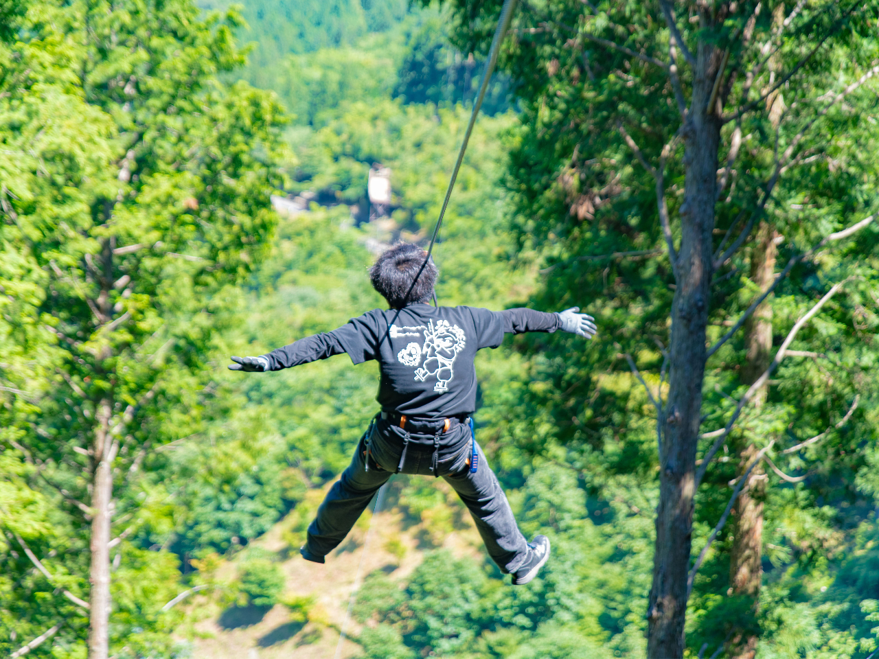 四万十川源流点、四国カルスト麓の町、津野町の森の中にあるフォレストアドベンチャー・高知。