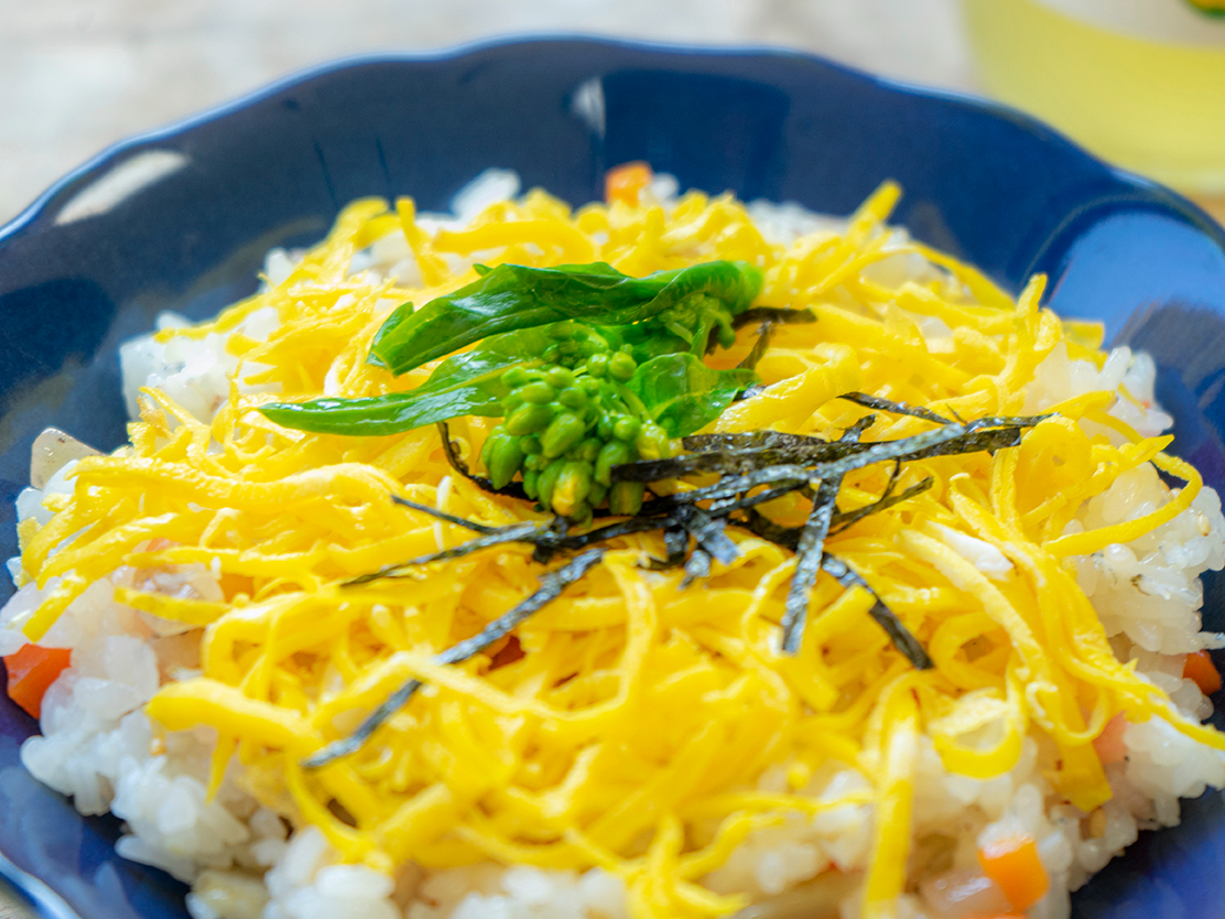 源泉かけ流し 森の小さな温泉で都会を離れてゆったりまったり。癒やしの時間を。柚子香る五目寿司セットをご提供