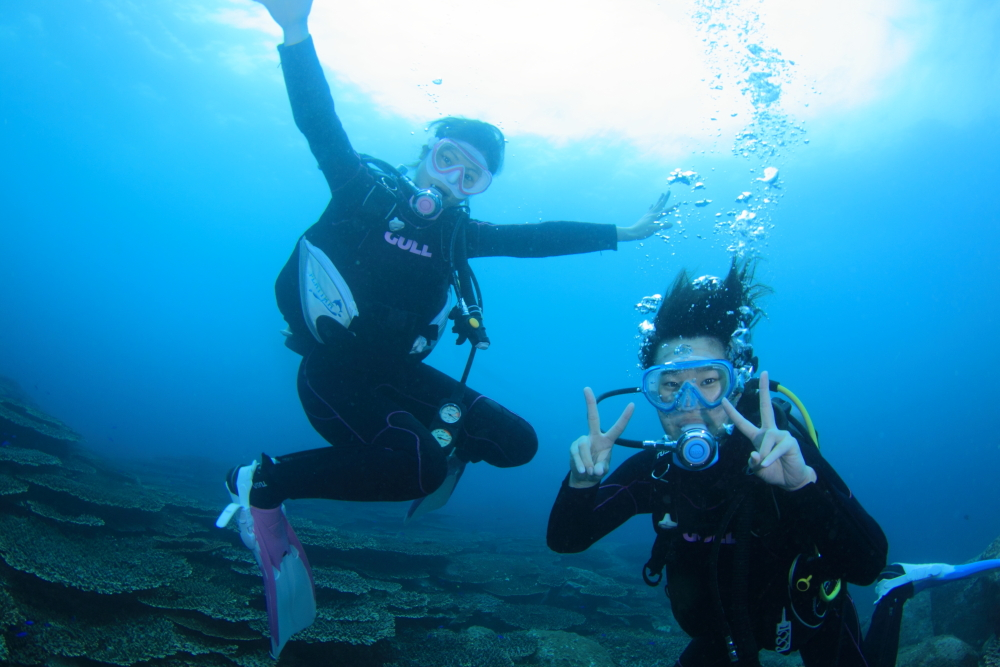 ・世界最大の潜水教育団体PADIのライセンス。世界中どこでも使えます・資格取得で2人以上のダイバーと18mまでダイビングできるようになります