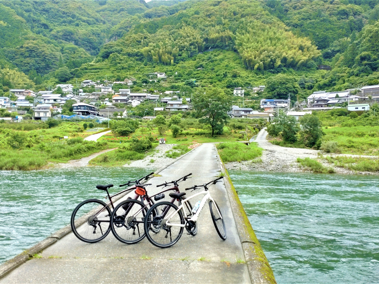 仁淀ブルーで有名な仁淀川の沈下橋を電動アシスト自転車でめぐります