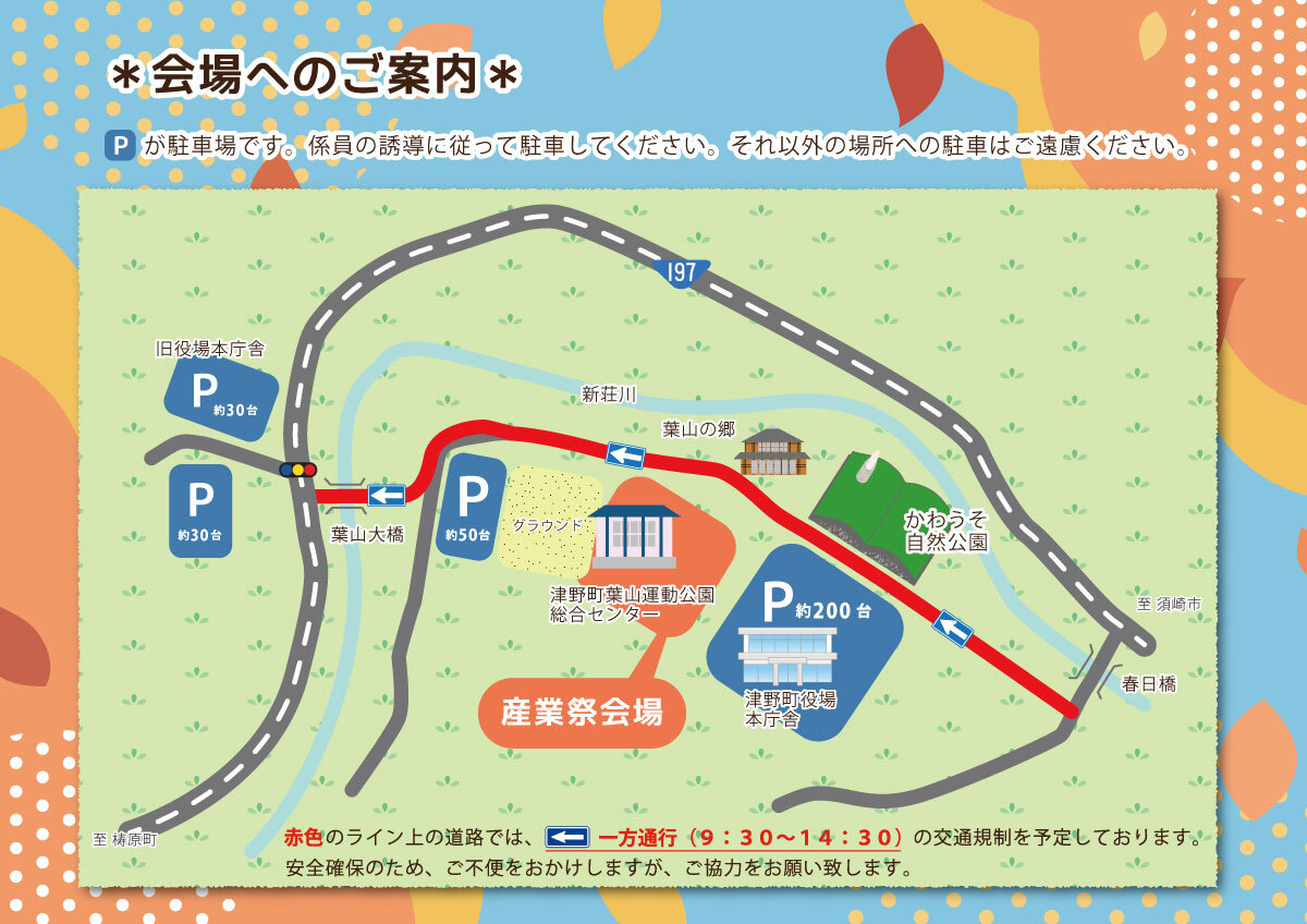 ※案内図のPが駐車場です。係員の指示に従って駐車してください。 - 交通アクセス