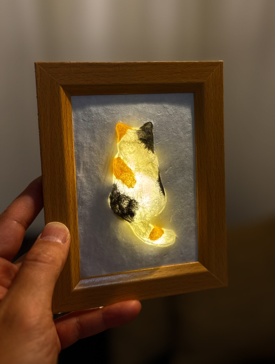 ④紙漉き体験5~10分、乾燥30~40分、制作(家ランプ:約30分・猫ランプ:約40〜60分)の計2時間程度です。(乾燥中は館内をご見学いただけます)