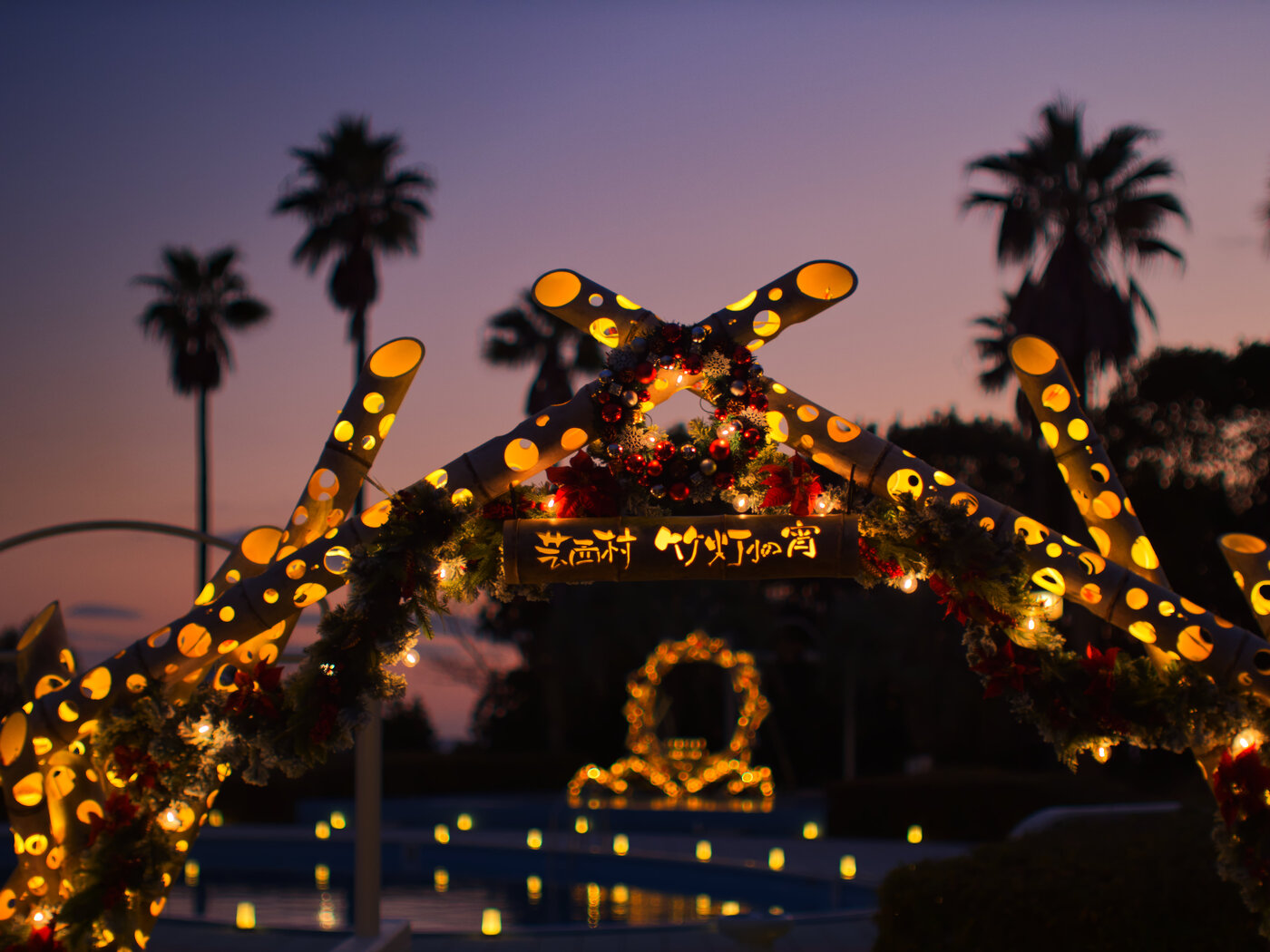 地域資源である竹を活用し、地元の方の協力を得て作られた大小さまざまな約100基のオブジェが、芸西村の冬の夜を温かく、そして幻想的に彩ります。