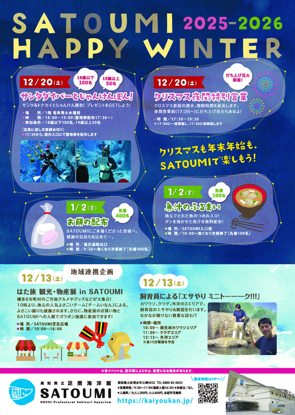 他にも幡多地域の観光・物産展の開催や、SATOUMIで過ごすクリスマスイベント、お正月イベントなど盛りだくさんです。