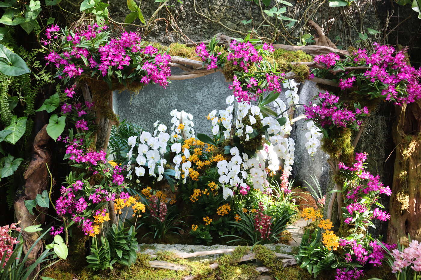 今回の「ラン展」は、色鮮やかなラン科植物をふんだんに植栽したスポットが多数登場し、冬の温室を華やかに彩ります。