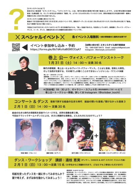 1月30日(金)から2月1日(日)までの4日間、絵金没後150年を記念して、県内の芸術家による絵画・版画・写真など和紙作品、約10点を展示します。
