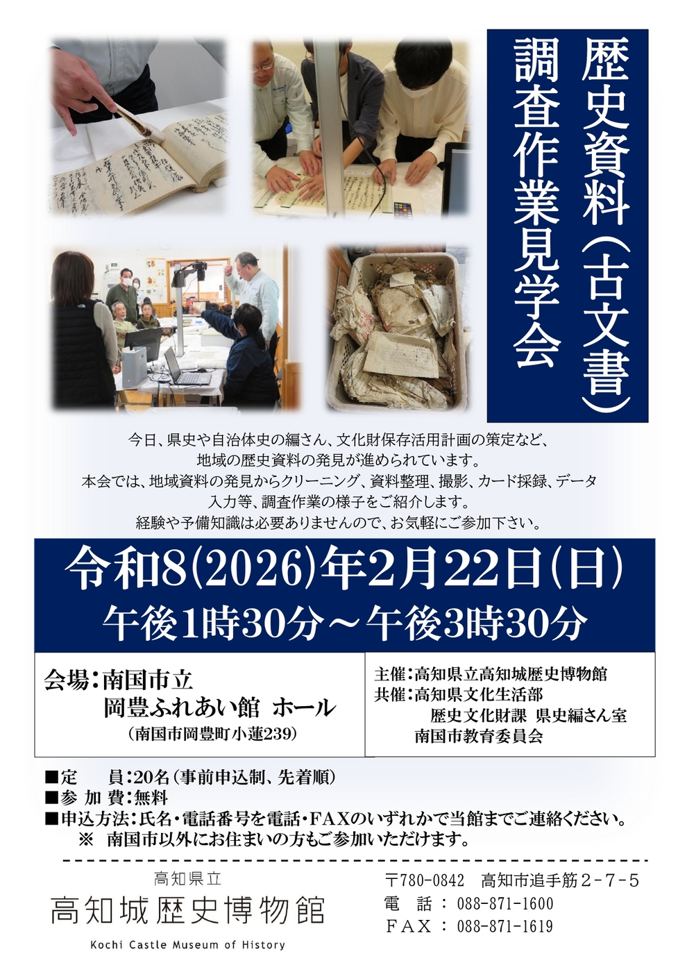 歴史資料(古文書)調査作業見学会(南国市)【高知城歴史博物館】