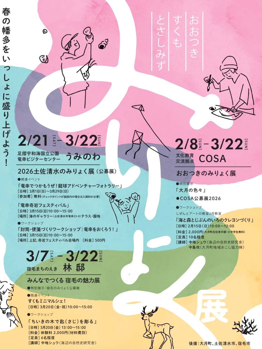 会 期:2026年2月21日(土)〜3月22日(日)開催場所:足摺宇和海国立公園 竜串ビジターセンター うみのわ