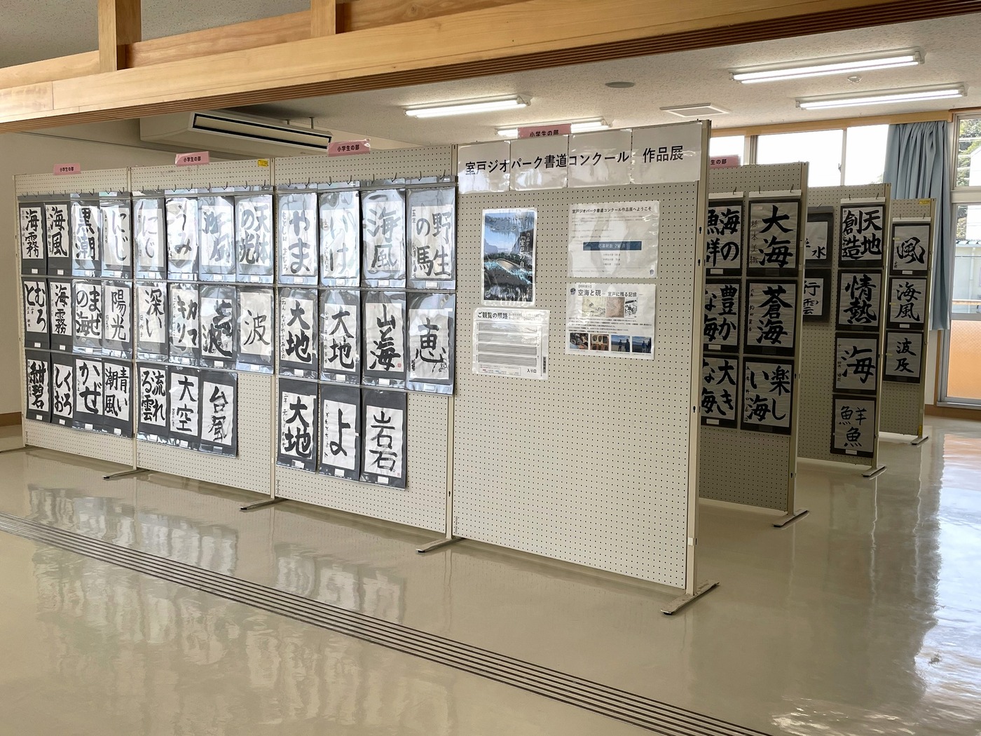 昨年末から今年2月末まで募集していた「室戸ジオパーク書道コンクール」の審査が終了し、現在室戸世界ジオパークセンター2Fで作品展を開催しています。