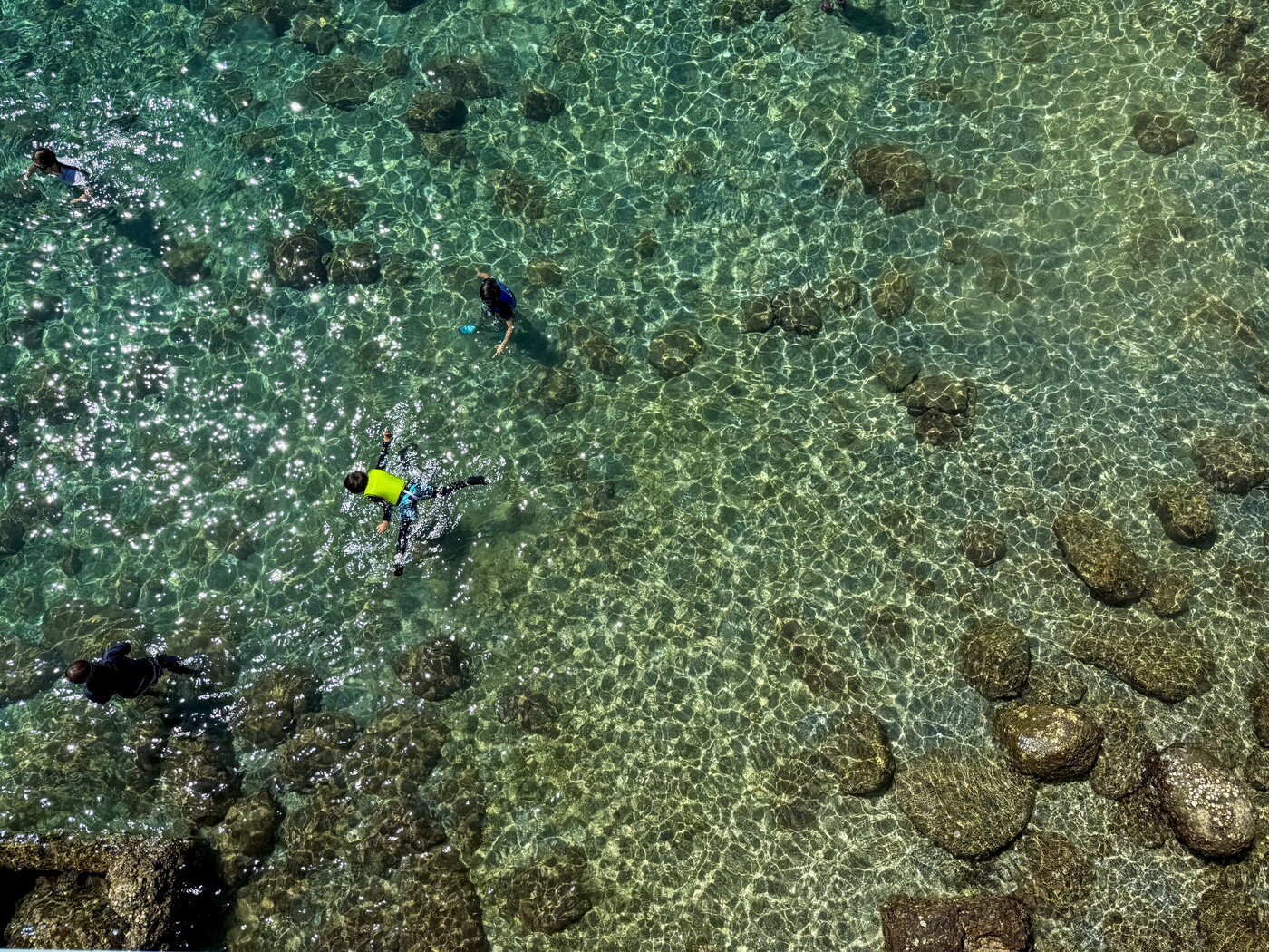 透明度抜群の海では、浅瀬でもサンゴやカラフルな熱帯魚を観察でき、シュノーケリングだけでも十分に海中世界を楽しめます。夏には白浜やキャンプ場が賑わいを見せ、家族連れやアウトドア愛好家で溢れます。