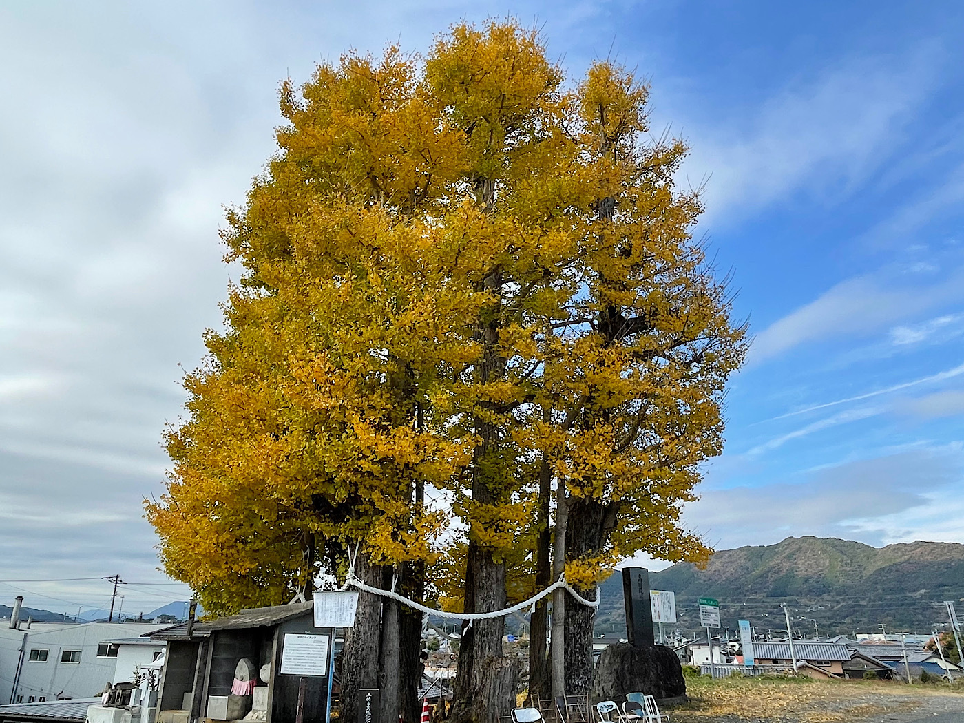 仁淀川下流の堤防上にある大きなイチョウで、土佐市の天然記念物に指定されています。
