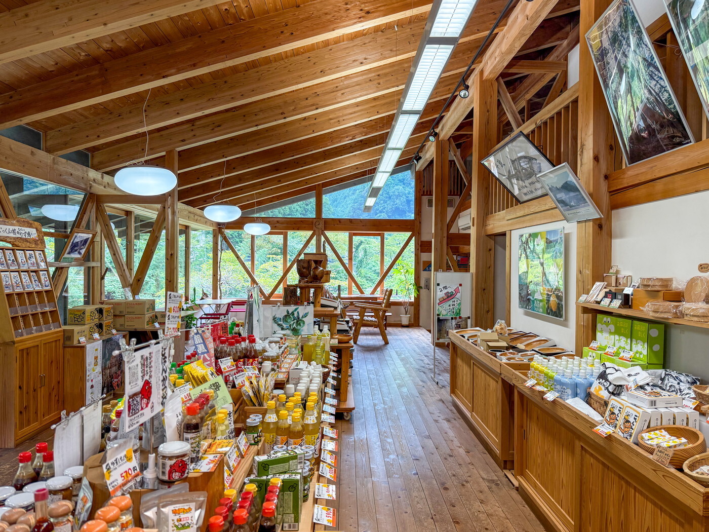馬路村の観光案内所であり、ゆず製品や魚梁瀬杉の木工芸品などを数多く販売しています。