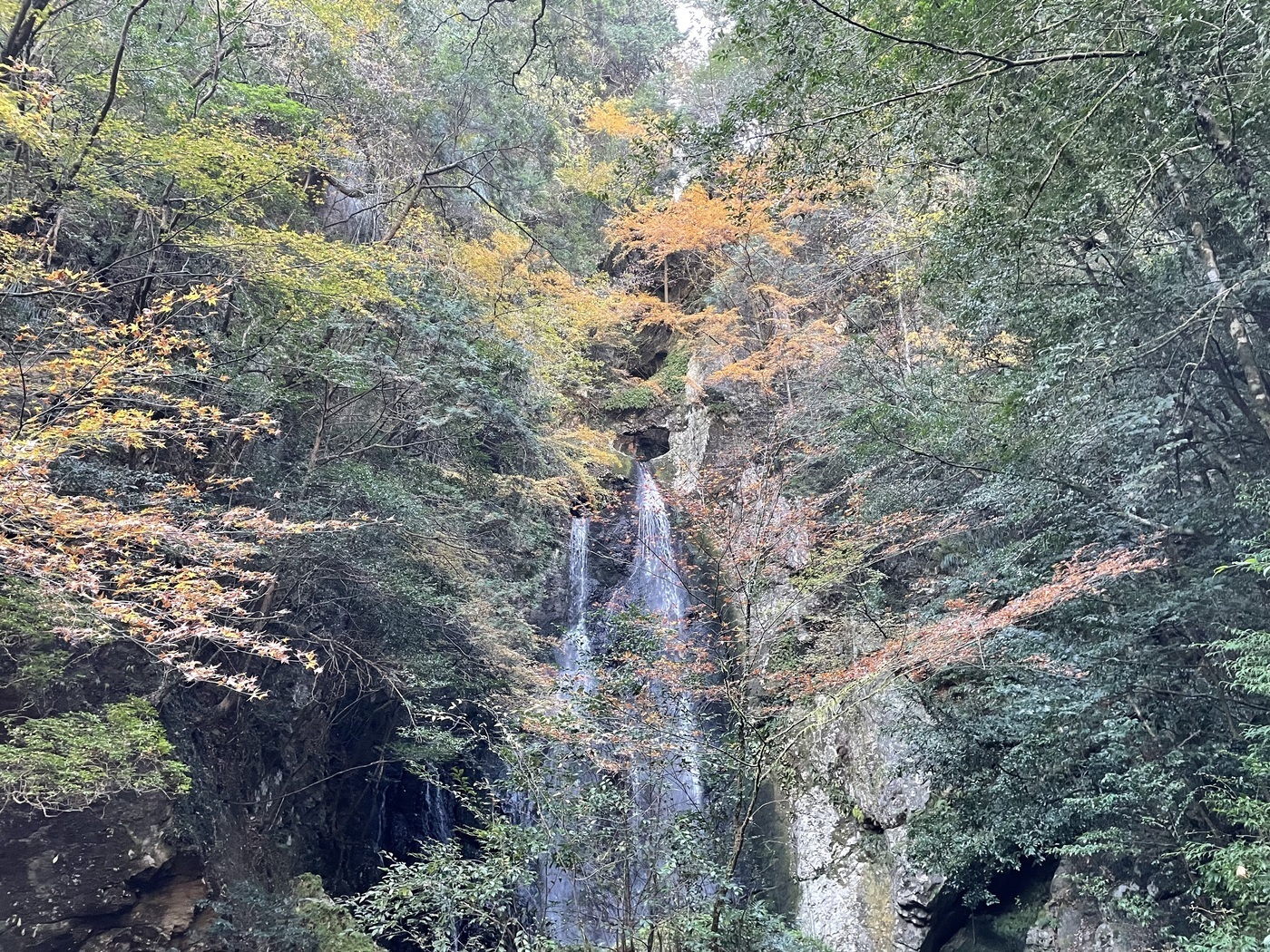 春は新緑、秋は紅葉の景色が美しい落差約34メートルの滝。