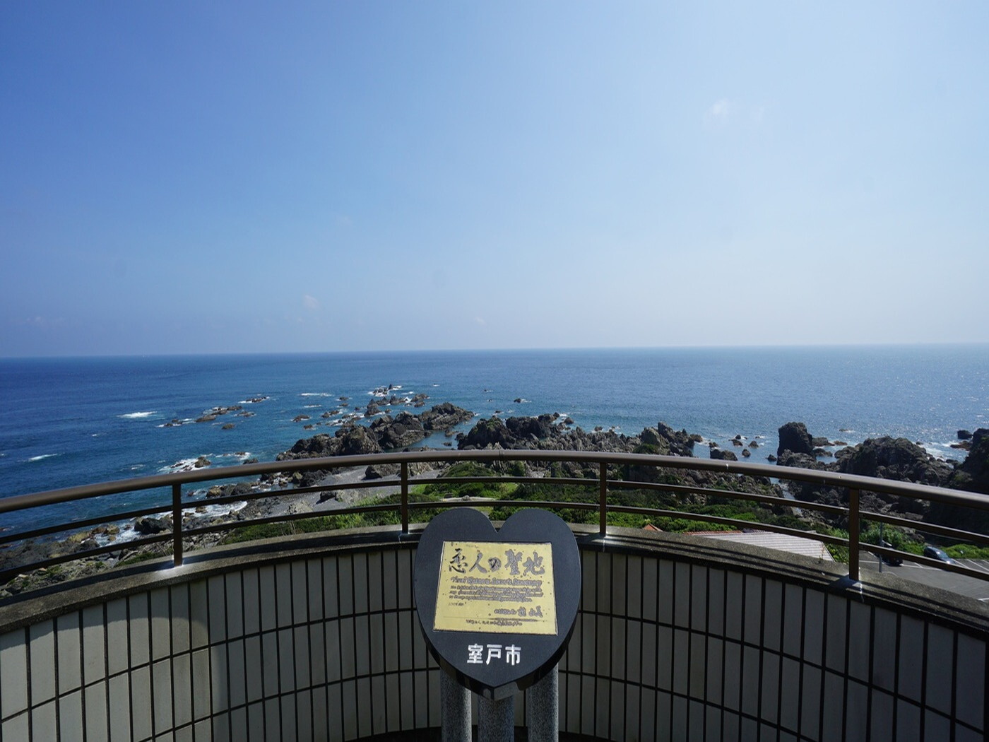 室戸岬の中岡慎太郎像の上にある展望台。展望台からは、果てしなく広がる太平洋と隆起したダイナミックな大地を望むことができる穴場絶景スポット。恋人の聖地の1つ。