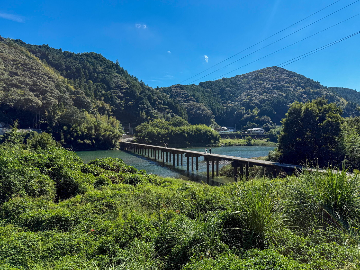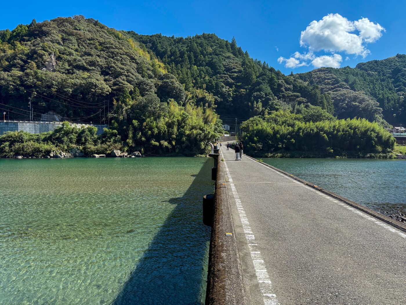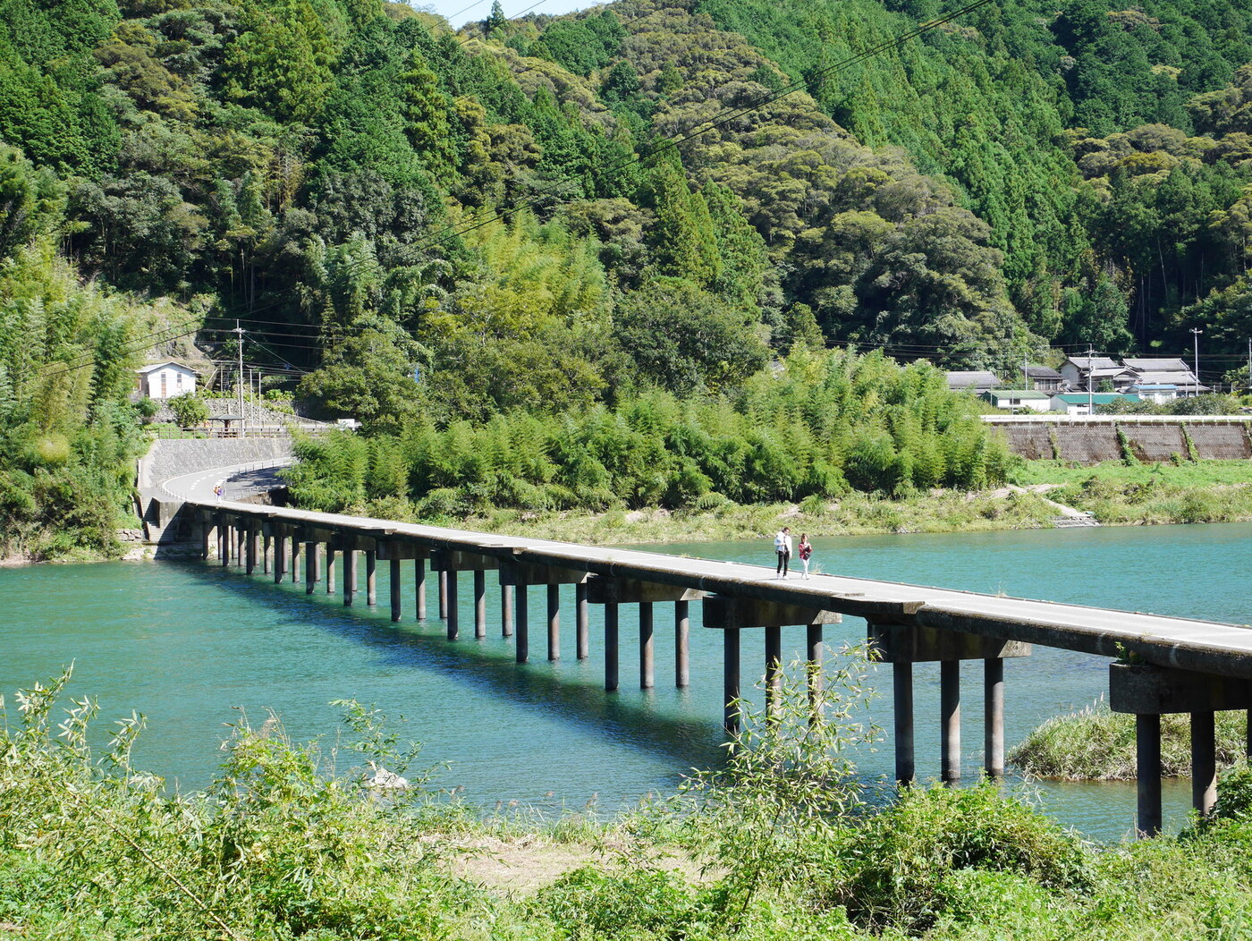仁淀ブルーの愛称で知られる仁淀川で最も下流にある沈下橋。日高村といの町を結ぶ生活道。交通量が比較的多く、待避所が4ヶ所設けられている。