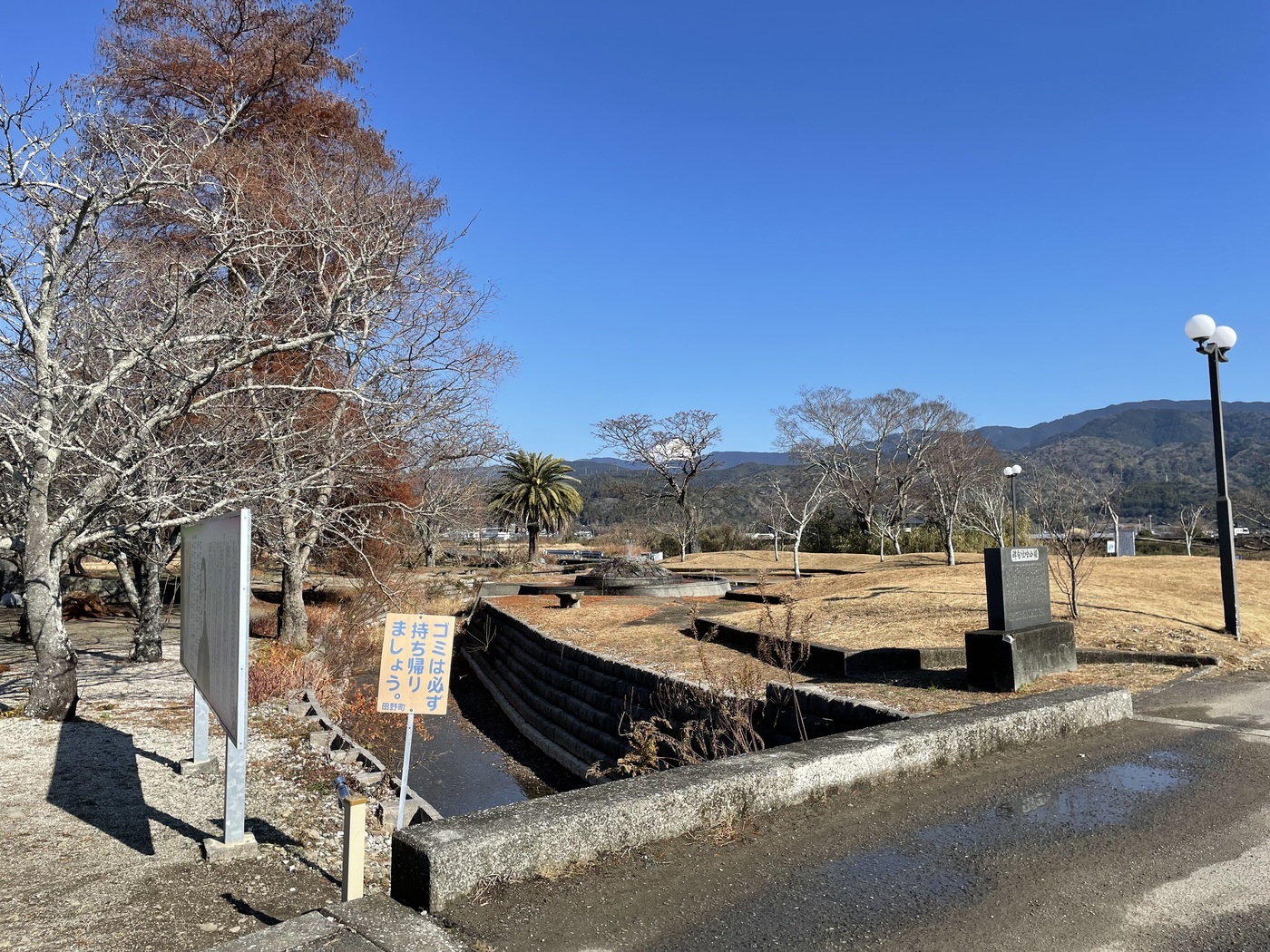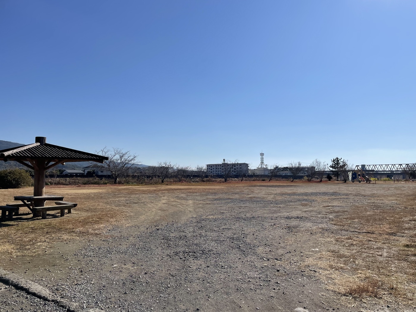駐車スペースや遊具もあり、トイレや温泉施設も近くにあることから、キャンプには最適の場所になっています。
