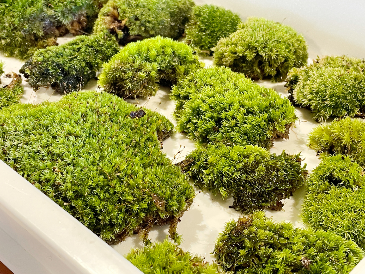 種類によって異なる苔の豊かな表情を組み合わせれば、まるで山や森を切り取ったような緑の世界が生まれます。