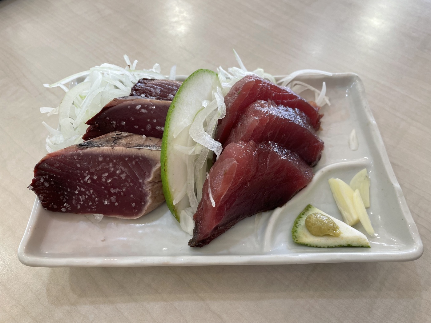 佐賀漁港で揚がったカツオを地元のおばちゃん達が豪快な藁焼きにしてくれるお店。