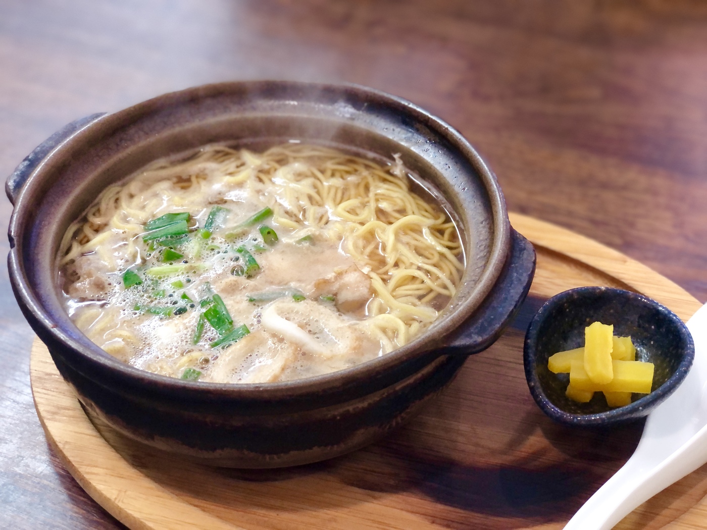 オリジナルスープで、あっさりなのにコクのある鍋焼きラーメン