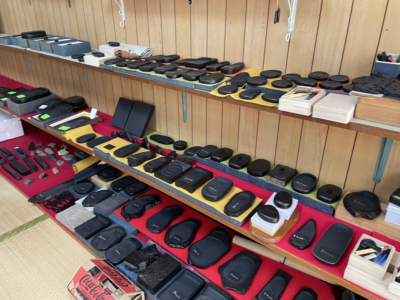 書道で使う硯(すずり)に適した岩が採れ、硯の産地として知られている三原村。
