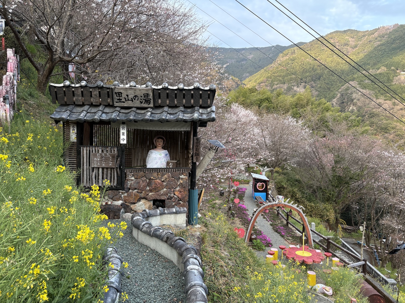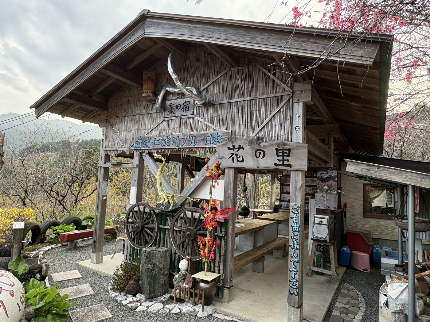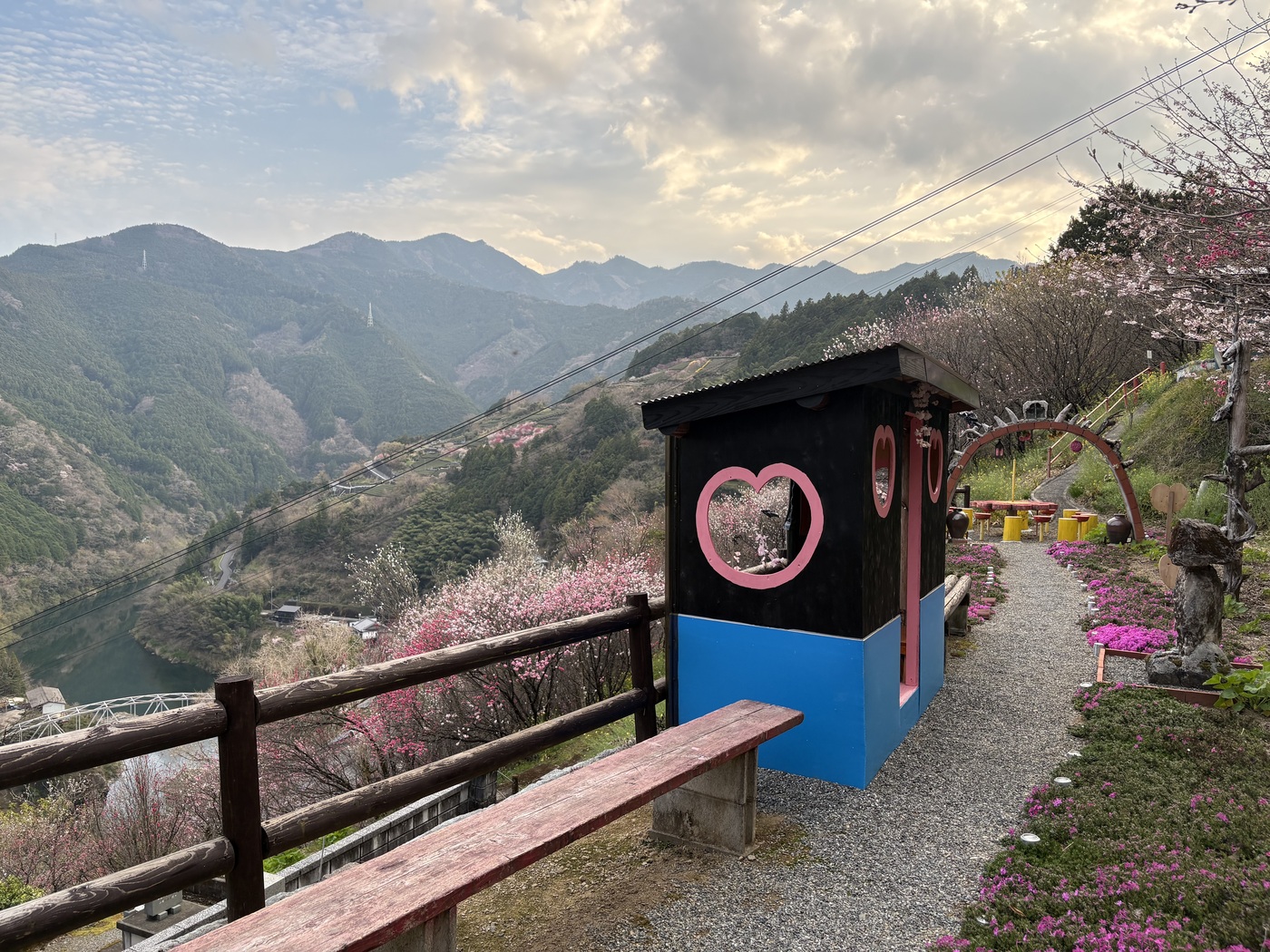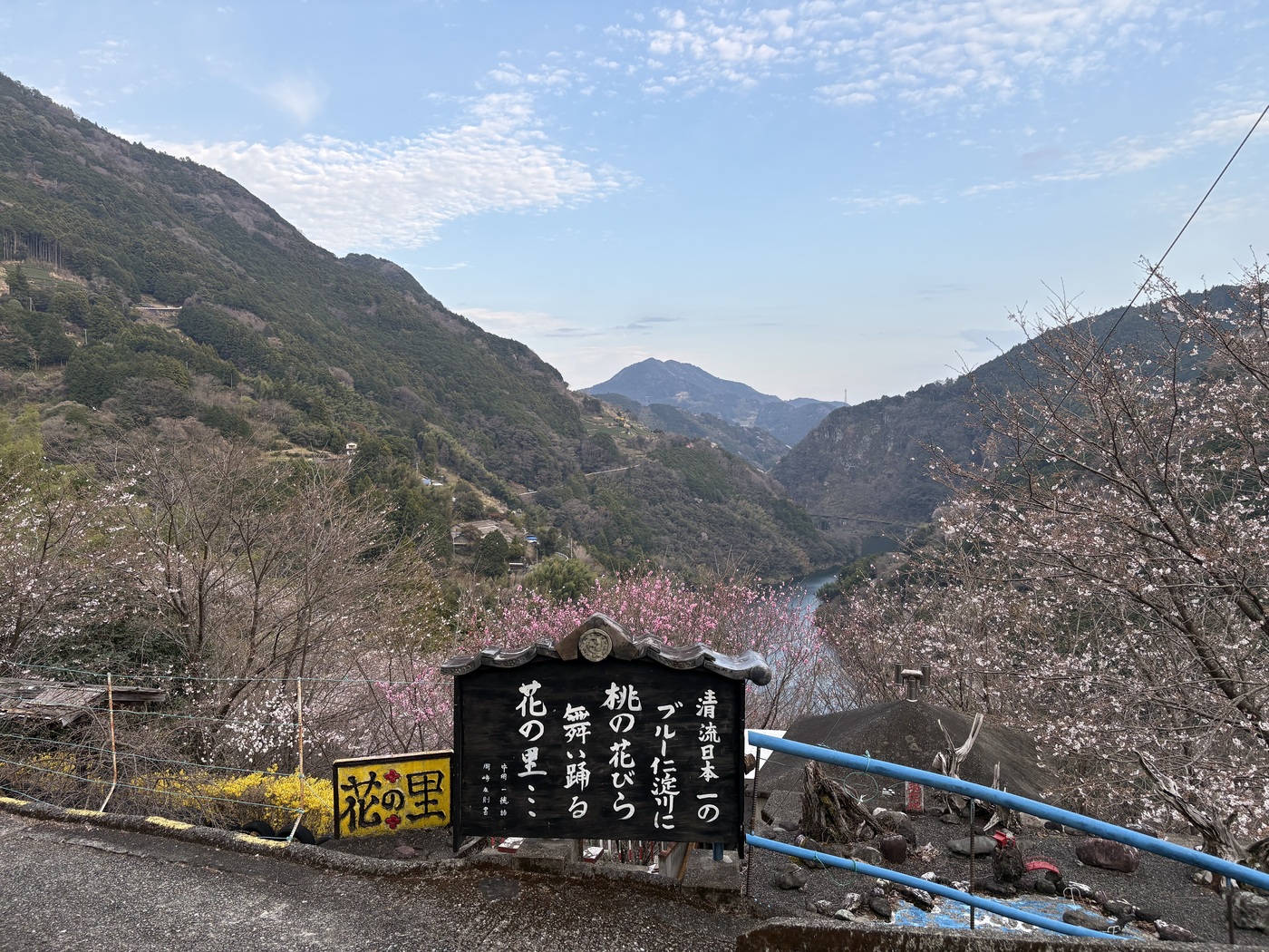 仁淀川が見下ろせ、春には花桃や桜の花が楽しめます。