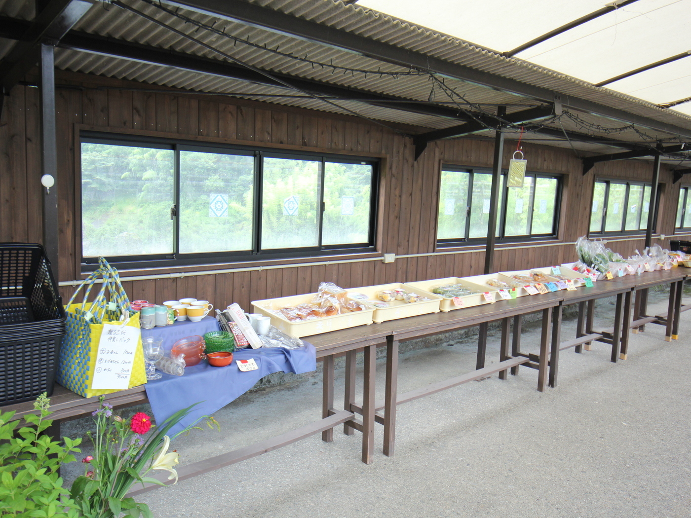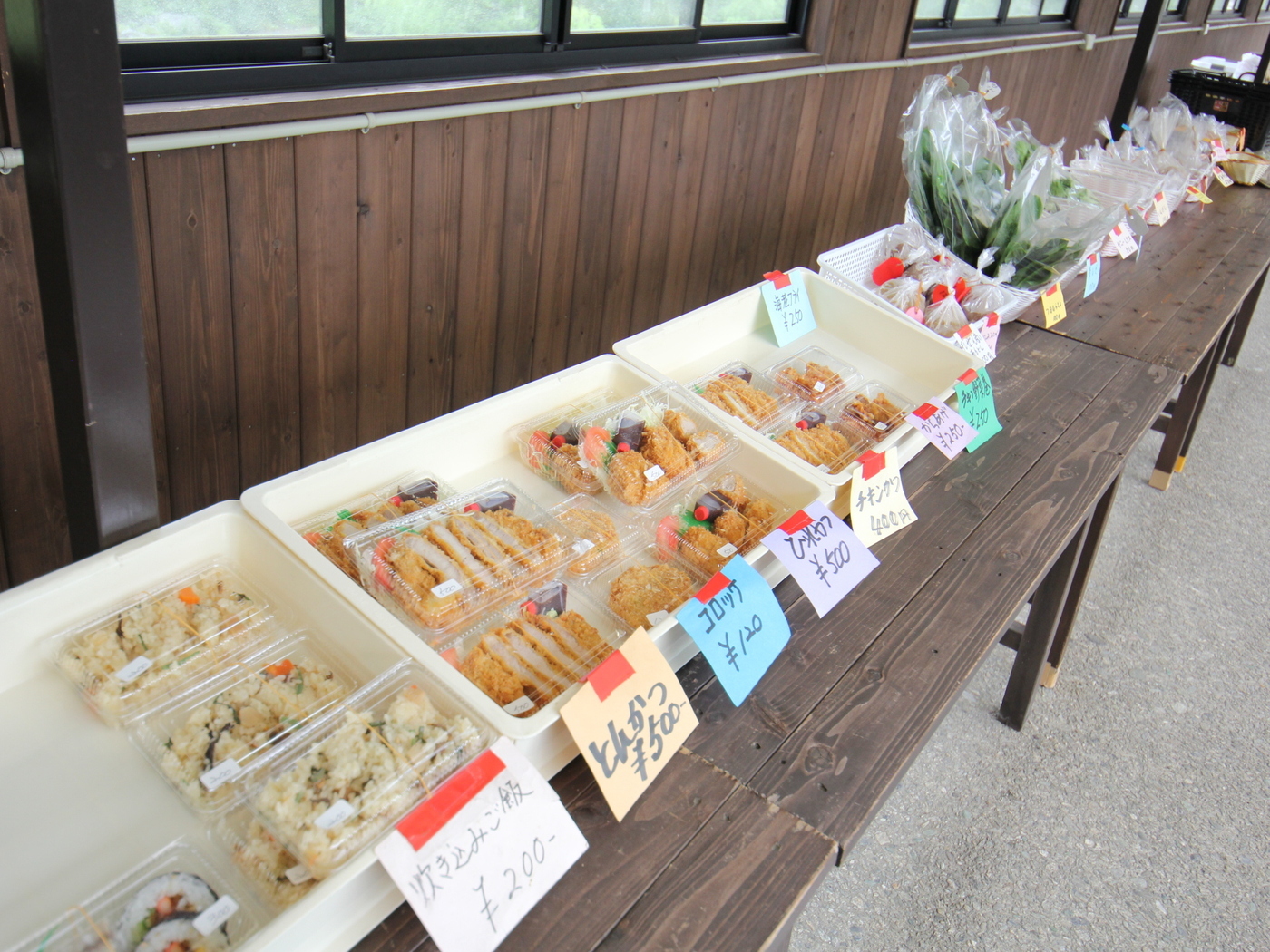 地元の新鮮な野菜や手作りの総菜などが並ぶ、仁淀川町の土曜市。