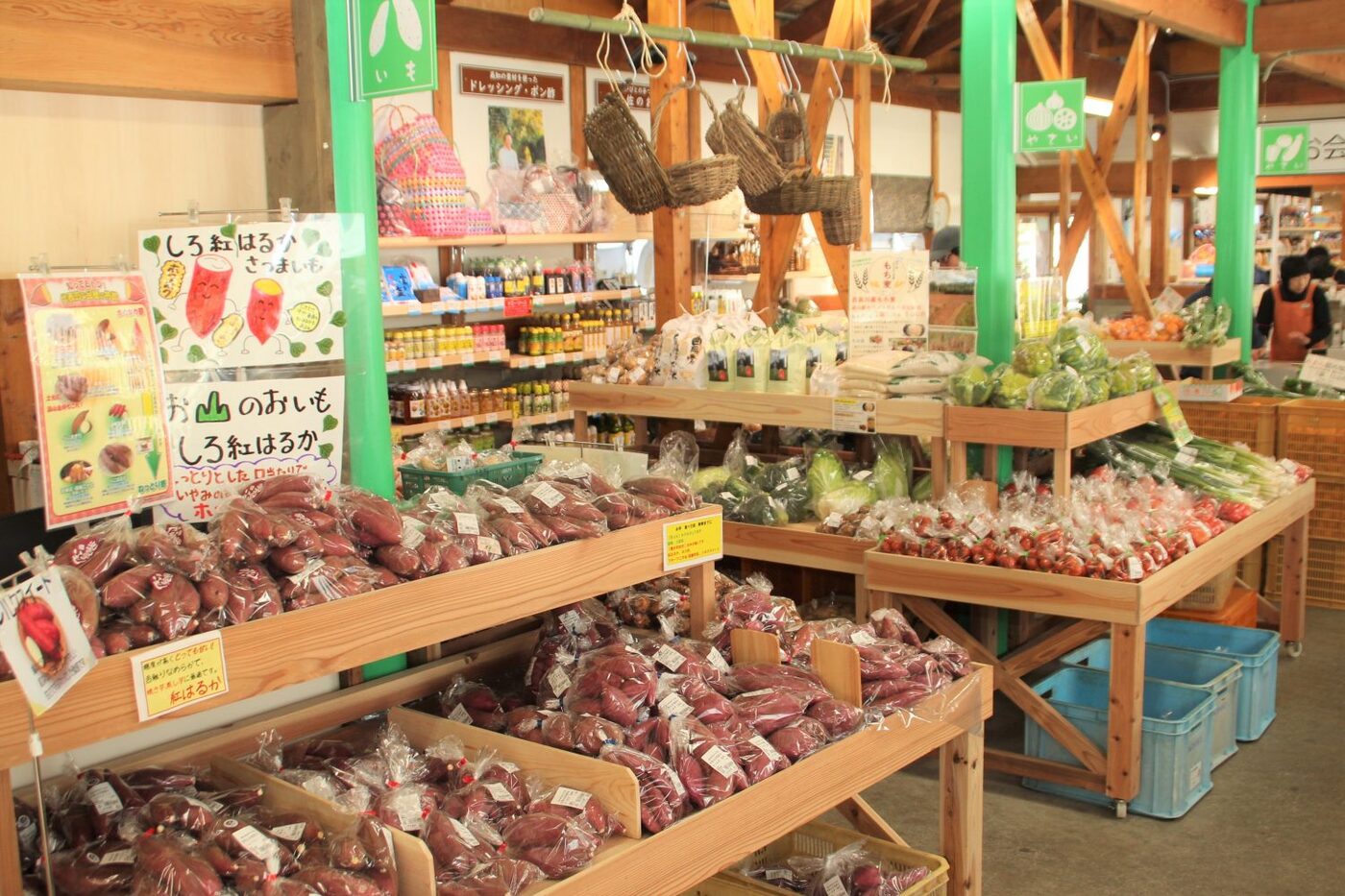 皮が柔らかくホクホク感が特徴の「早掘りサツマイモ」や、糖度が高い「キラ坊スイカ」、サツマイモを使ったクリーム大福やお菓子が人気です。