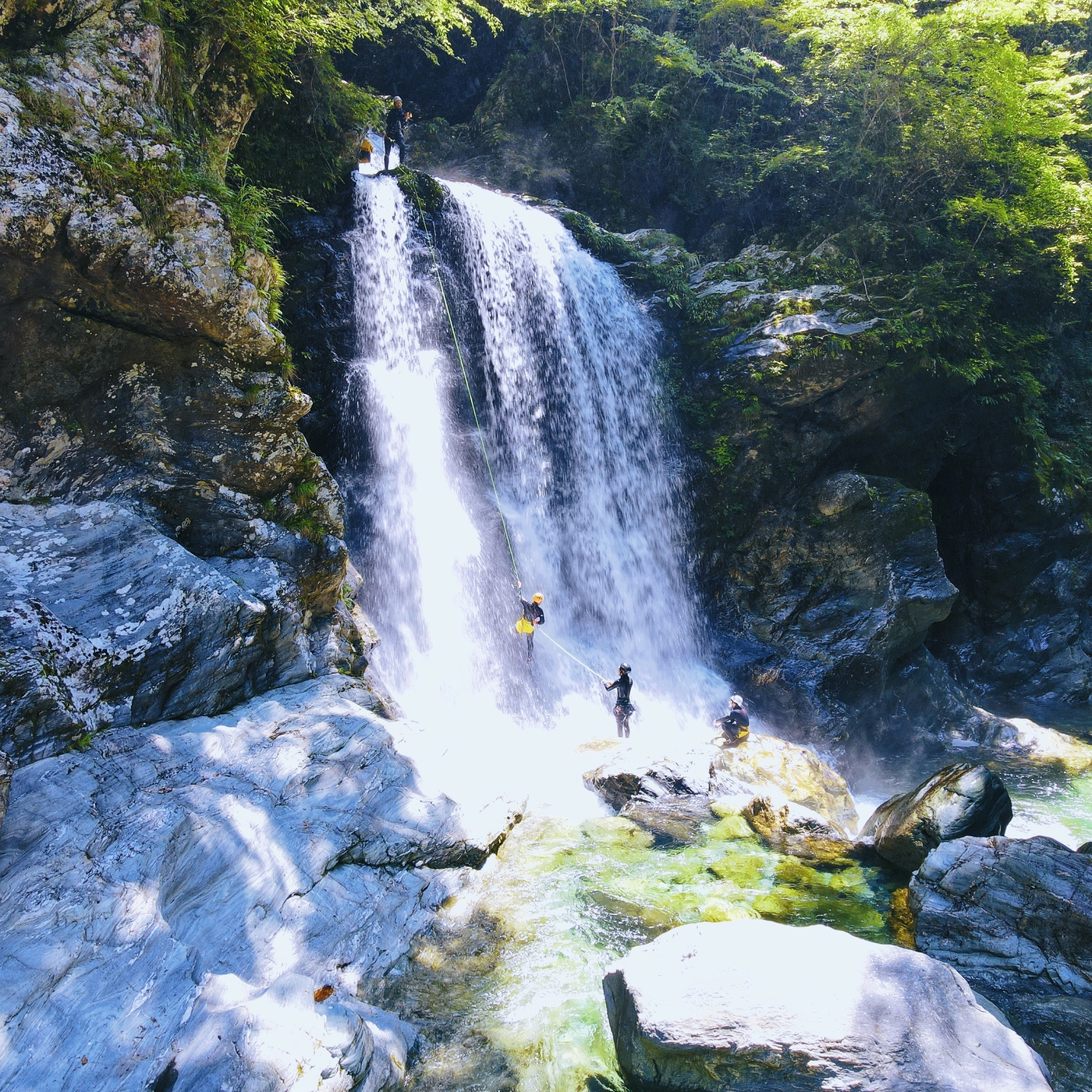 仁淀ブルーで有名な中津渓谷で、滝をロープで降りたり、崖からジャンプしたり、普通の登山道では行けない秘密のスポットをキャニオニングで楽しみませんか?