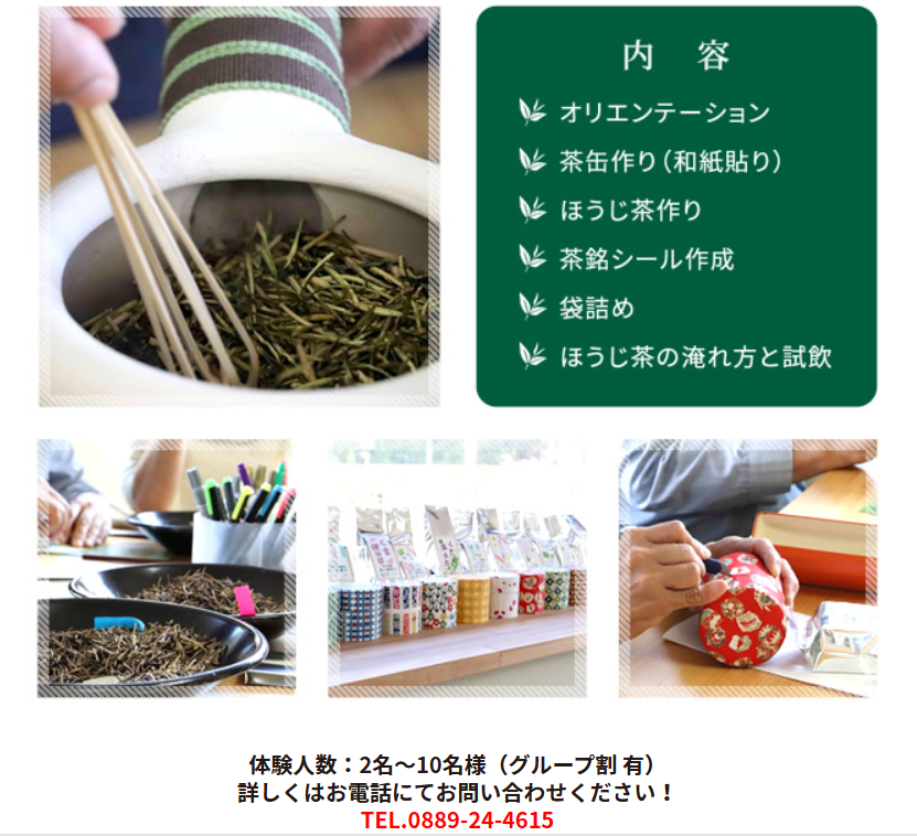 日高村にある「霧山茶園」では、土佐茶の魅力を存分に体感できる「ほうじ茶焙煎体験」と「オリジナル茶缶作り」を体験できます。