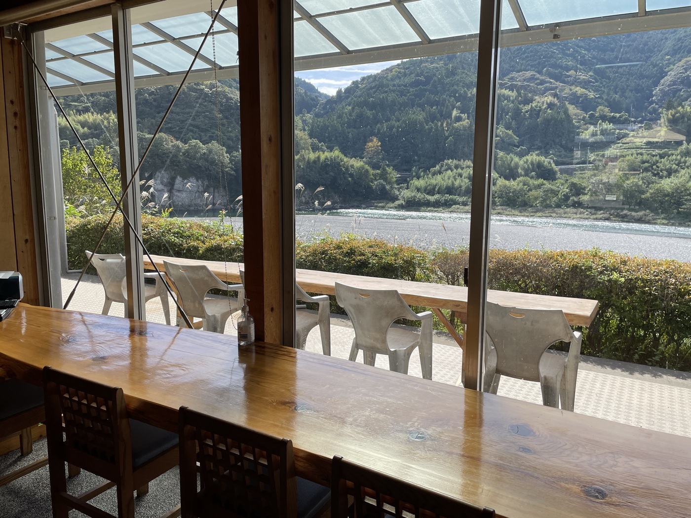 仁淀川の景色を眺めながら、地元食材を使った食事が楽しめます。
