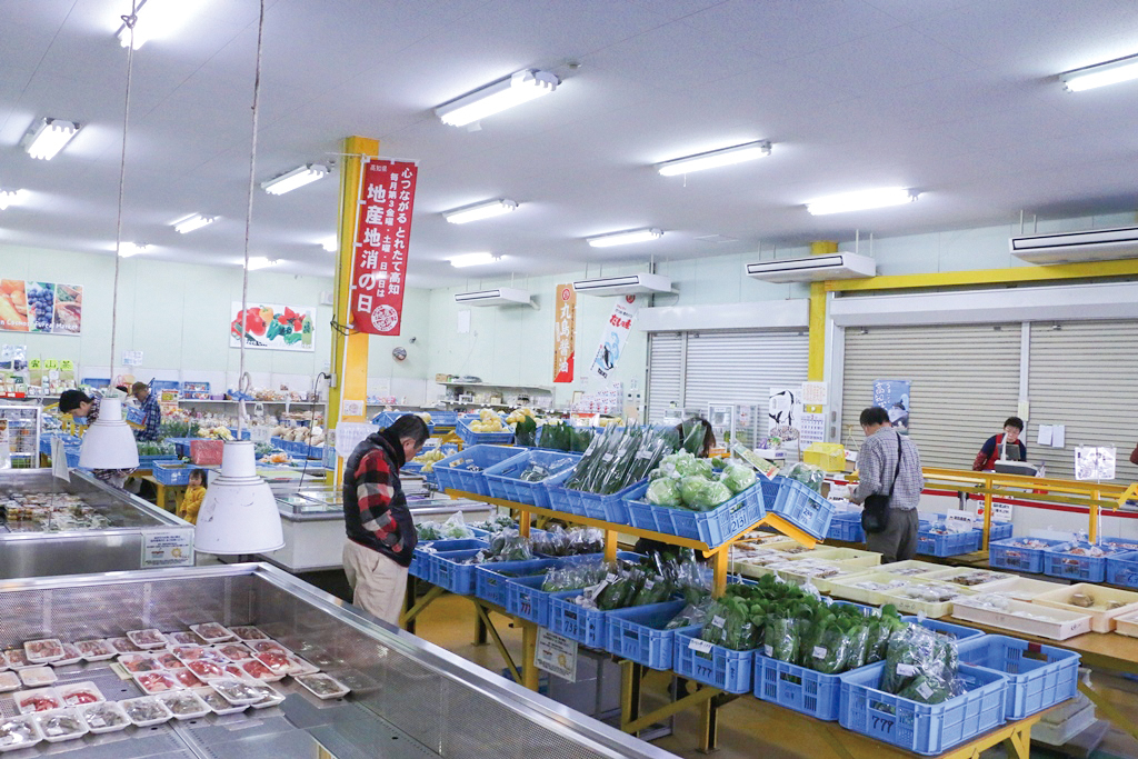 人気の高糖度トマト(季節限定)や仁淀川流域でとれた野菜・果物はもちろんのこと、花きや鮮魚、その他民芸品まで、豊富に品揃え。