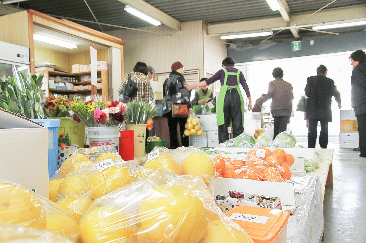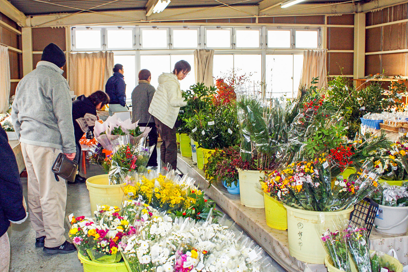 「花の市」としても有名な直販所。JA女性部員が育てた野菜、果物、花などが販売されています。