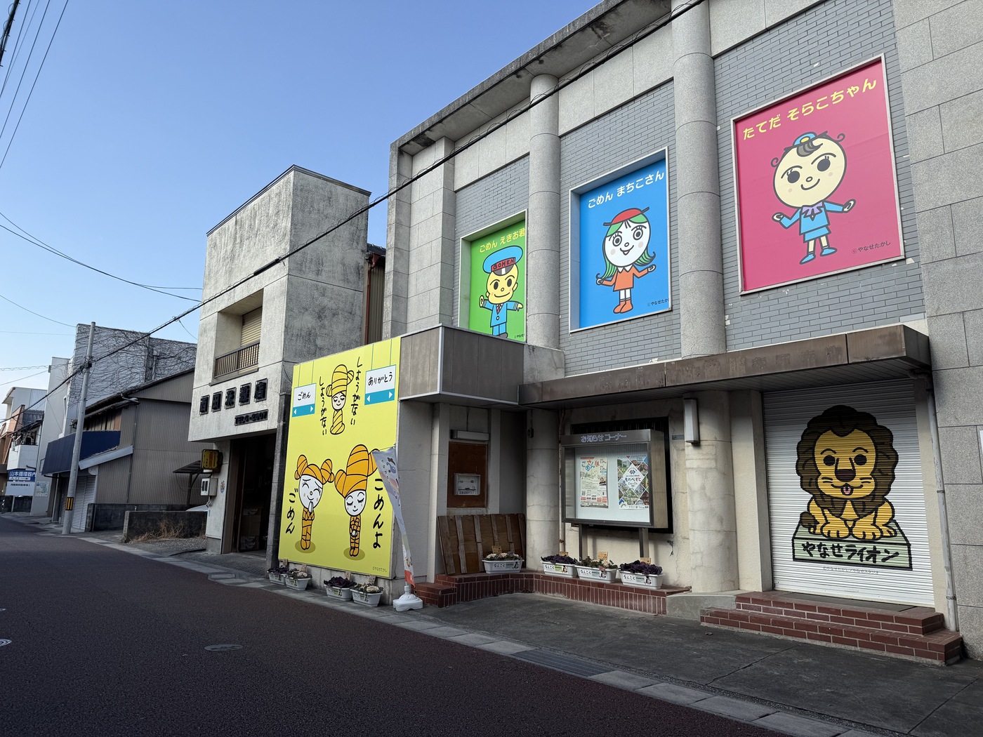 通り沿いには、高知特産のしょうがをモチーフにやなせさんがデザインした「しょうがちゃん」や「ありがとう駅のセンベちゃん」などのキャラクターが描かれたシャッターアートがあり、歩くだけで楽しい町並みが広がっています。