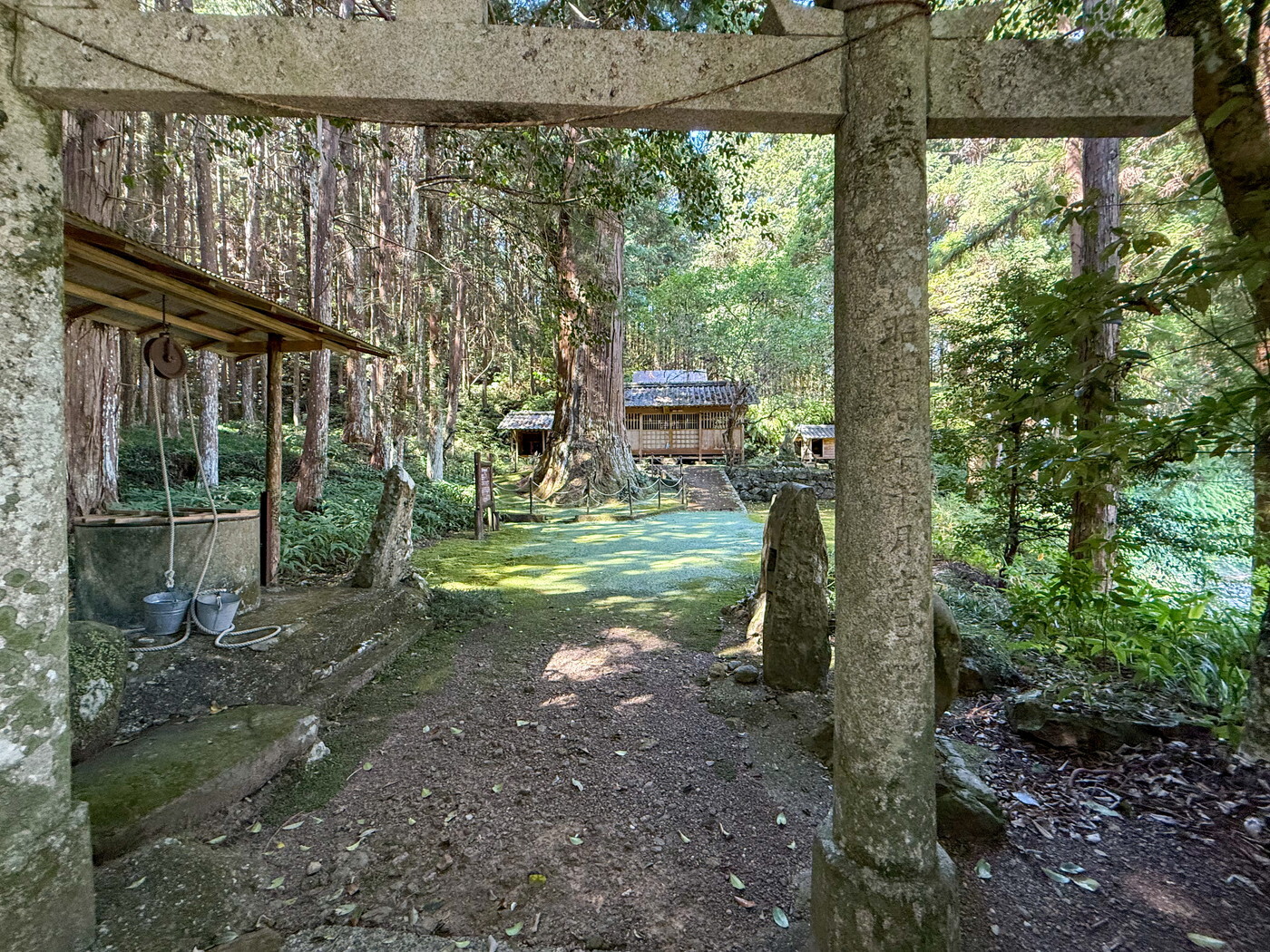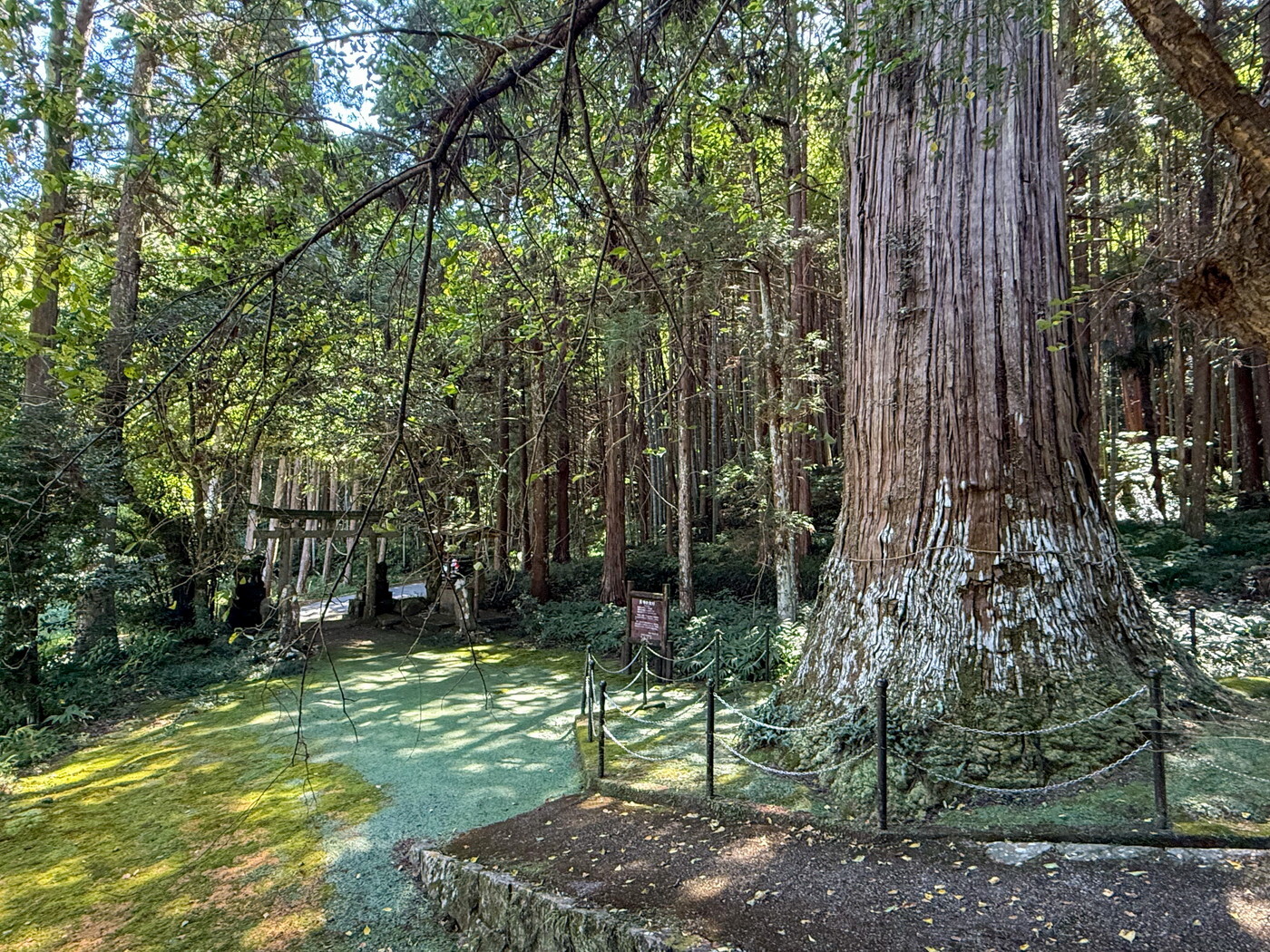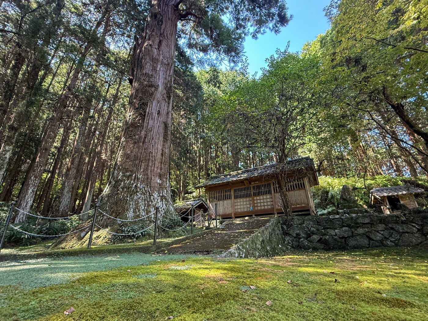 樹齢800年の大杉と苔の絨毯に覆われた境内