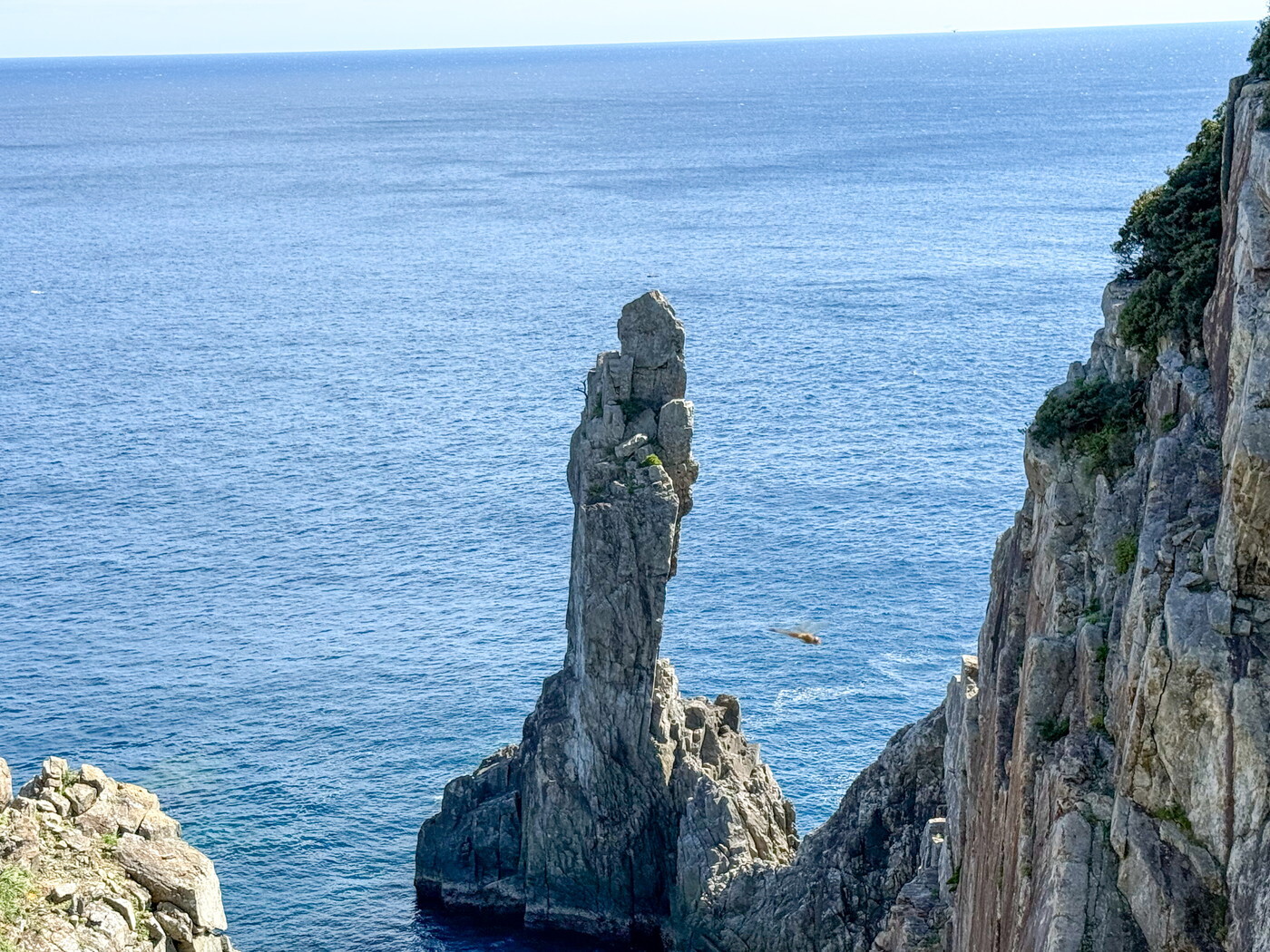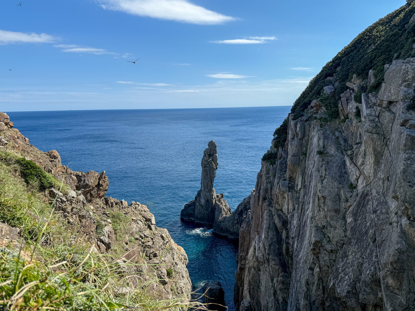 県道沿いから大堂山展望台へ続く遊歩道に入ってすぐの場所から眺めることができ、気軽に立ち寄れるスポットです。また、町内のクルーズ体験では、海上からそびえ立つ観音岩の迫力ある姿を間近に楽しむことができます。陸と海、両方から異なる表情を見せる絶景ポイントです。