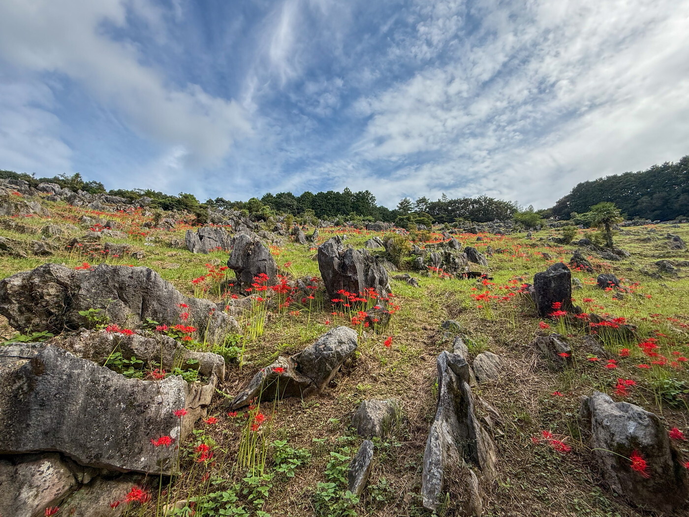 9月中旬頃からは見事な彼岸花が自生し、白い石灰岩と赤い花のコントラストが美しい秋の絶景を演出します。このオブジェは、日本の地質学の基礎を築いたドイツの地質学者・ナウマンがこの地を「地質のメッカ」として紹介したことに由来しており、佐川町の地質学的価値を象徴する地域が誇る名所です。