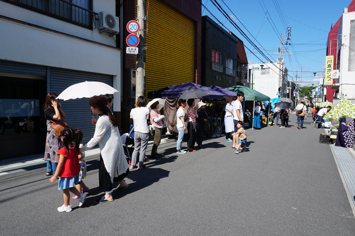 約150メートルの区間に野菜・果物・海産物・食品・植木・雑貨品等が販売されている。