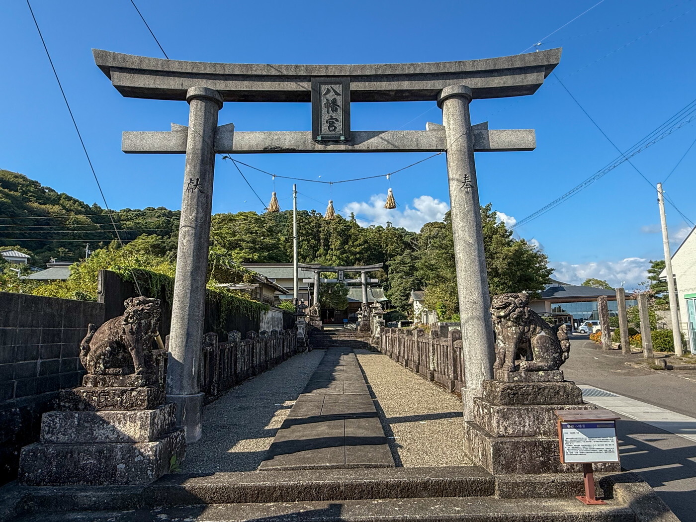 安田町役場の西方に鎮座する安田八幡宮は、戦国時代の領主・安田三河守によって創建されたと伝えられる歴史ある神社です。鎌倉時代に安田に移住した椎宗氏が安田を領有し、地名から安田氏を名乗り、領地の鎮守として安田八幡宮を造営しました。安田家代々の氏神として特に信仰が厚く、度々神殿の新築や改装が行われ、社領も寄進されてきました。足摂津彦命・気長足姫命・応神天皇を祭神とし、昔から安田・西島・唐浜・東島・中山・馬路の総鎮守として崇敬されています。参道の玉垣を構成する石柱には、八幡宮に信仰を寄せる寄進者の名や、天明35年(1815年)、天保13年(1843年)、嘉永元年(1848年)などの寄進年月が刻まれ、山形屋・久保屋・松屋・加茂屋・福枡屋・北方屋・浦古屋など屋号の彫られた石柱が並び、廻船や林業がもたらした安田の繁栄振りが偲ばれます。高知県指定有形文化財「大般若経541帖」を所蔵する、地域の歴史と文化を伝える貴重なスポットです。