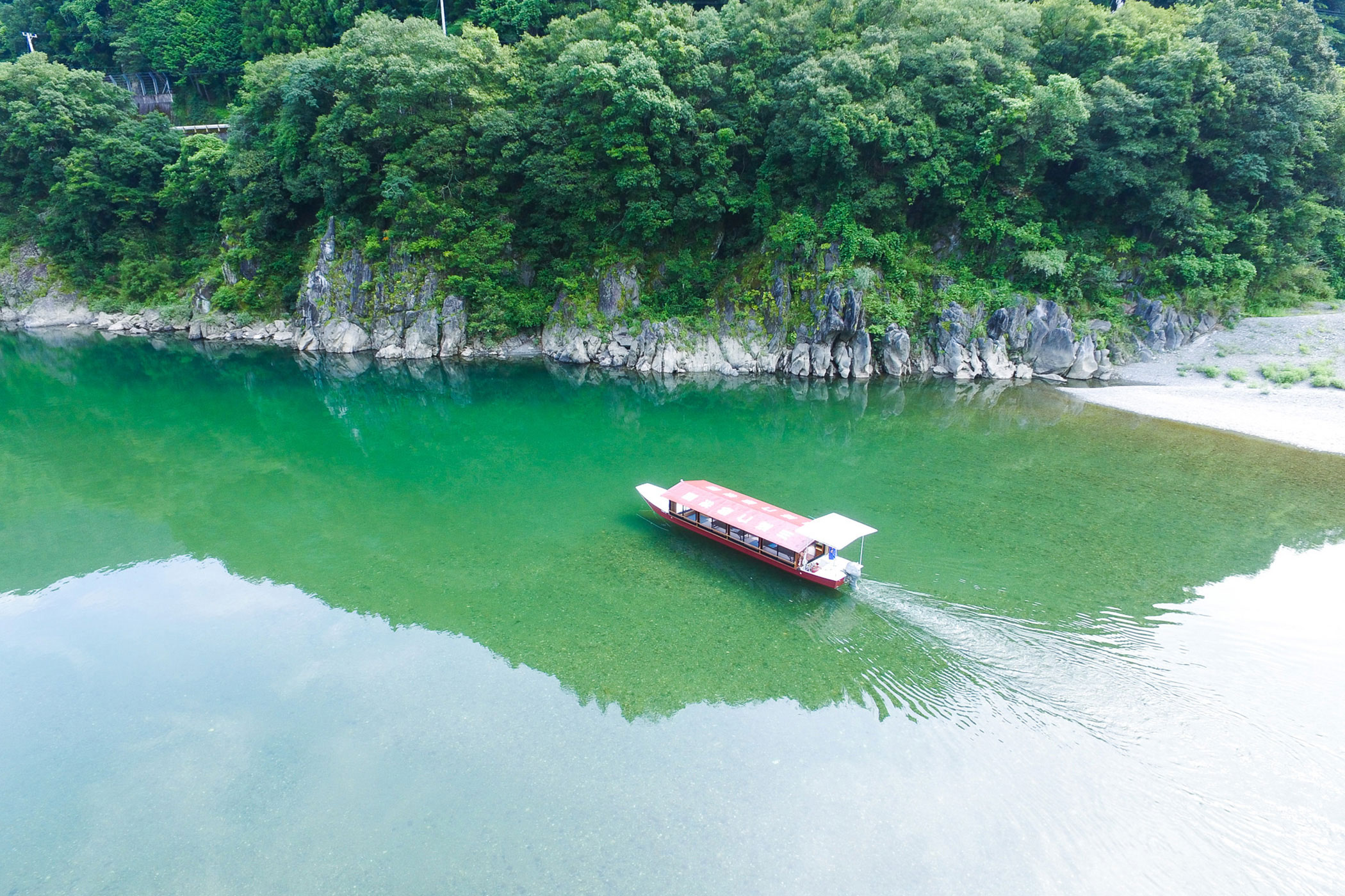 「仁淀ブルー」で有名な清流・仁淀川をゆったりと遊覧できる屋形船。