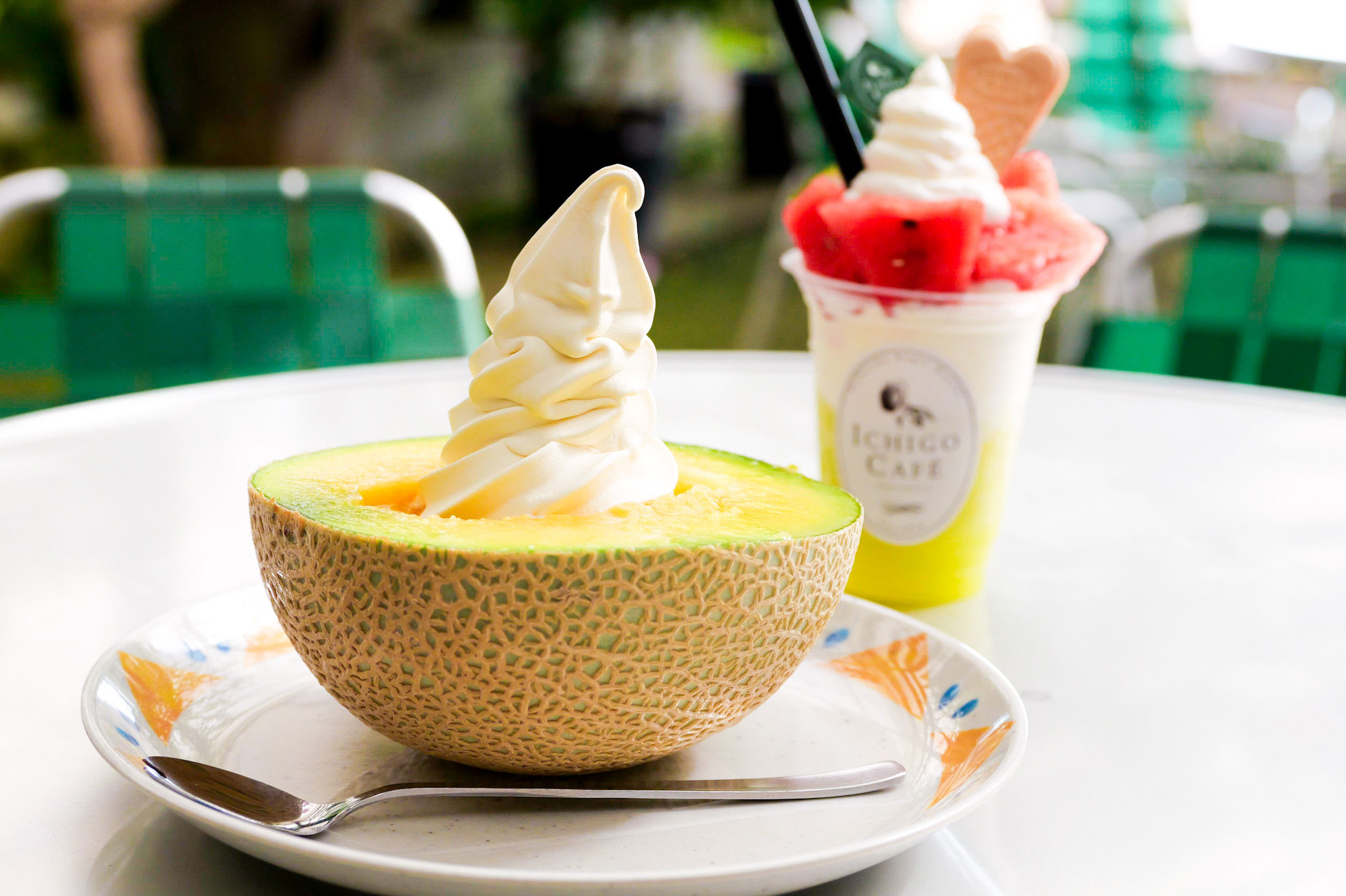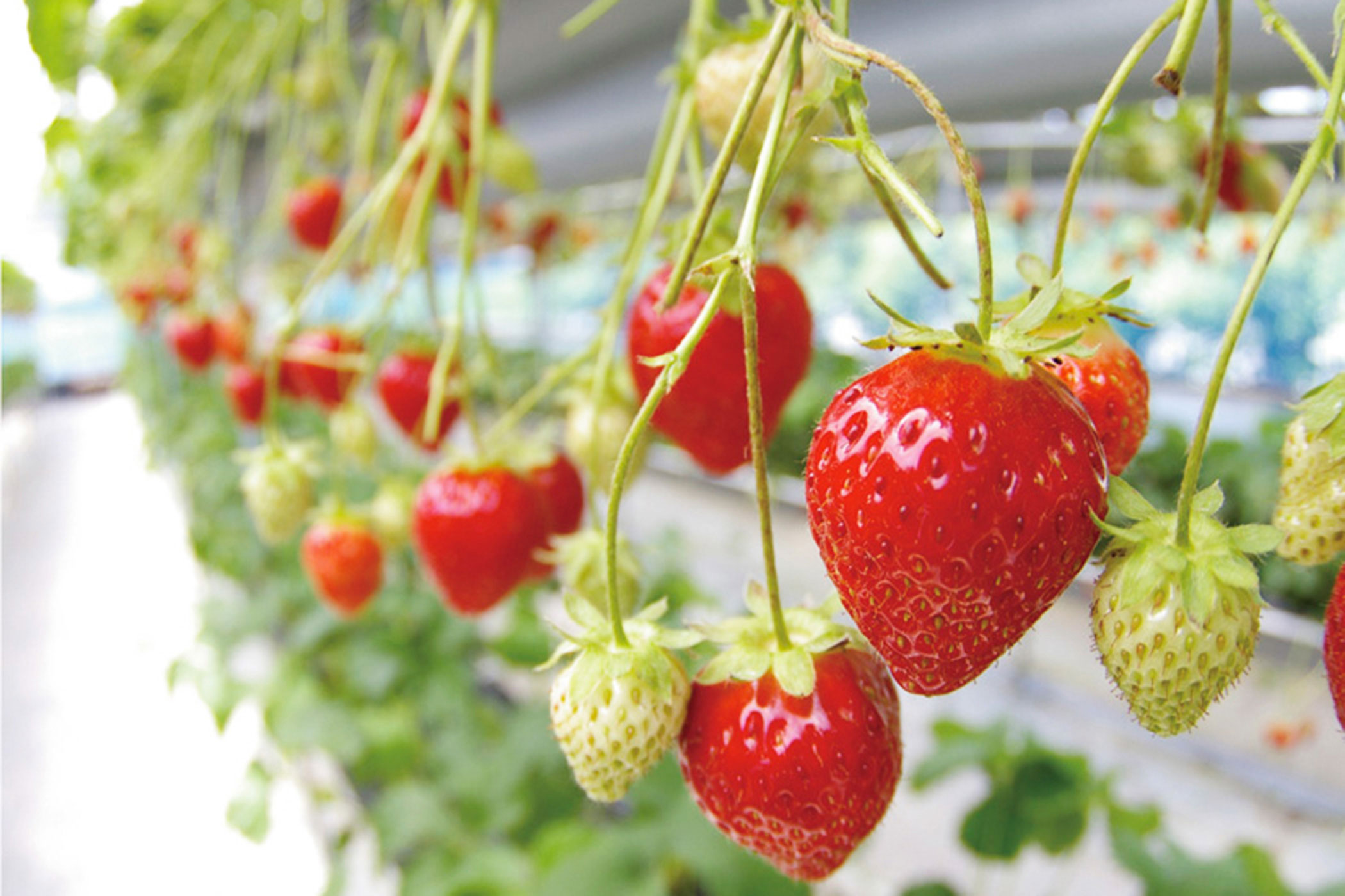 室内にある「いちごカフェ」では一年中メロンやスイカを使ったスイーツが楽しめるほか、1〜5月頃までは、採ったその場で食べられるイチゴ狩りも体験できます。