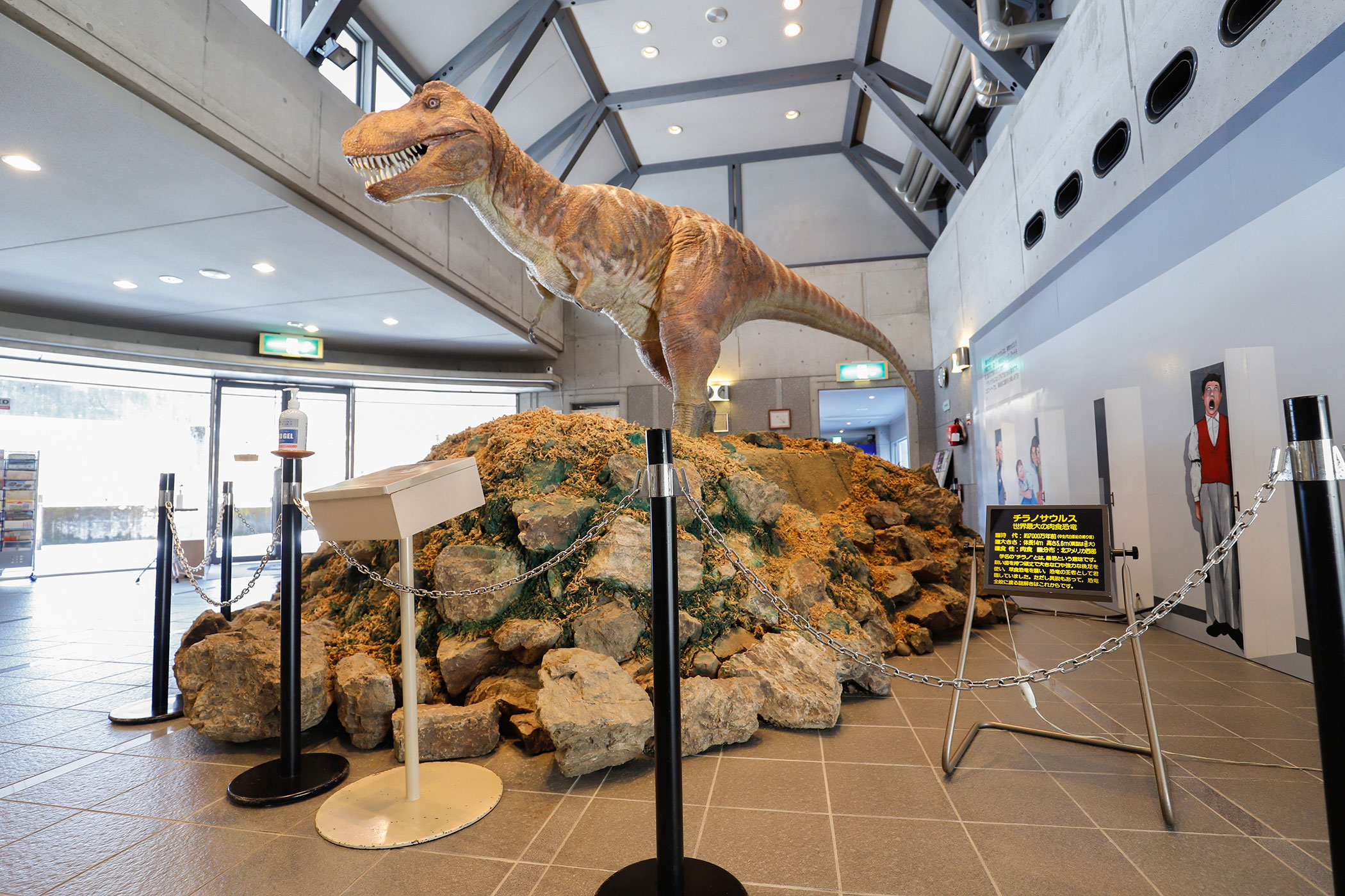 館内に入ると、動いて吠える迫力満点のティラノサウルスの出迎えを皮切りに、佐川町をはじめ国内外で見つかった貴重な化石や鉱物を展示しています。